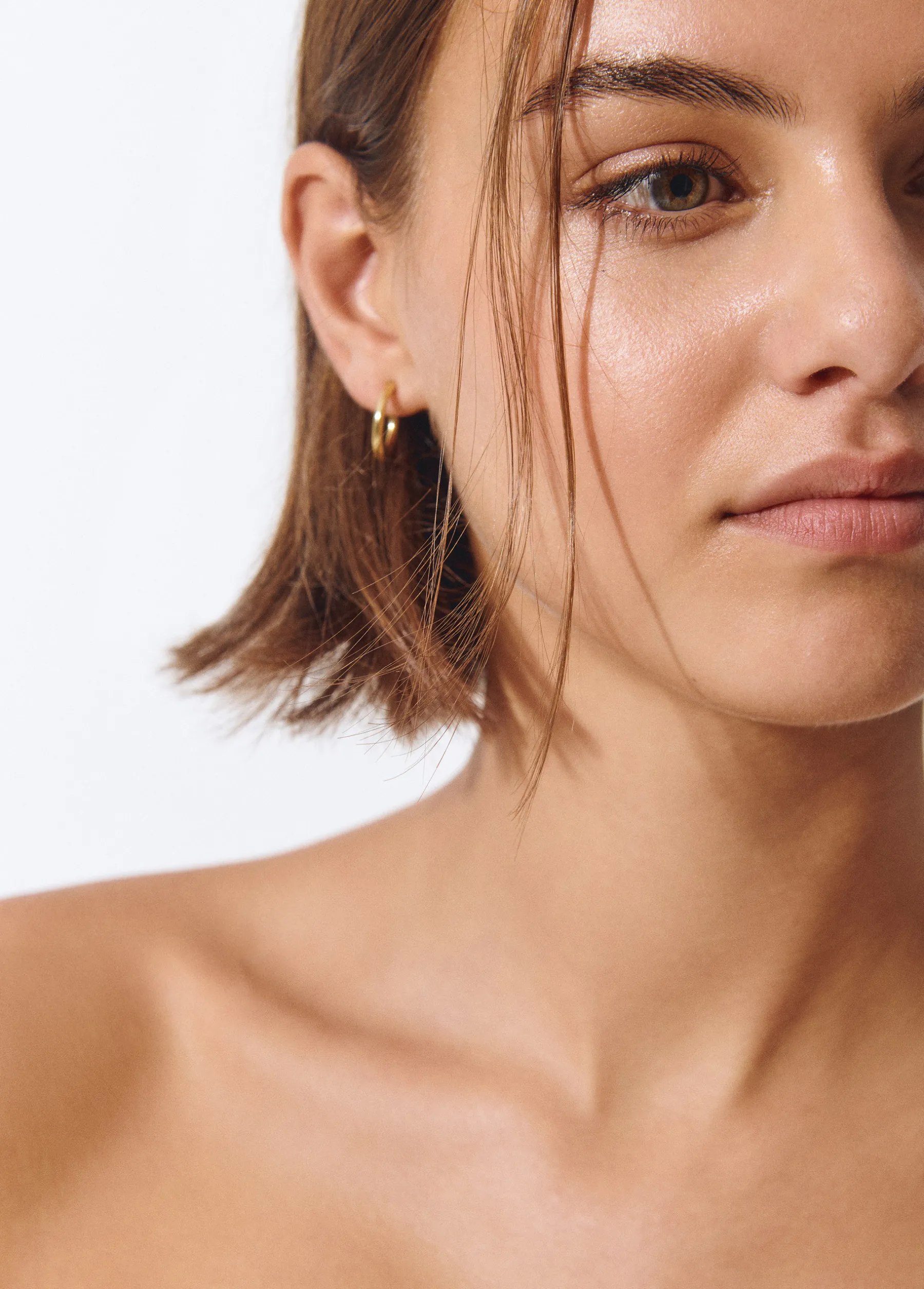 Aros de tamaño mini en dorado con cierre mediante tuerca.