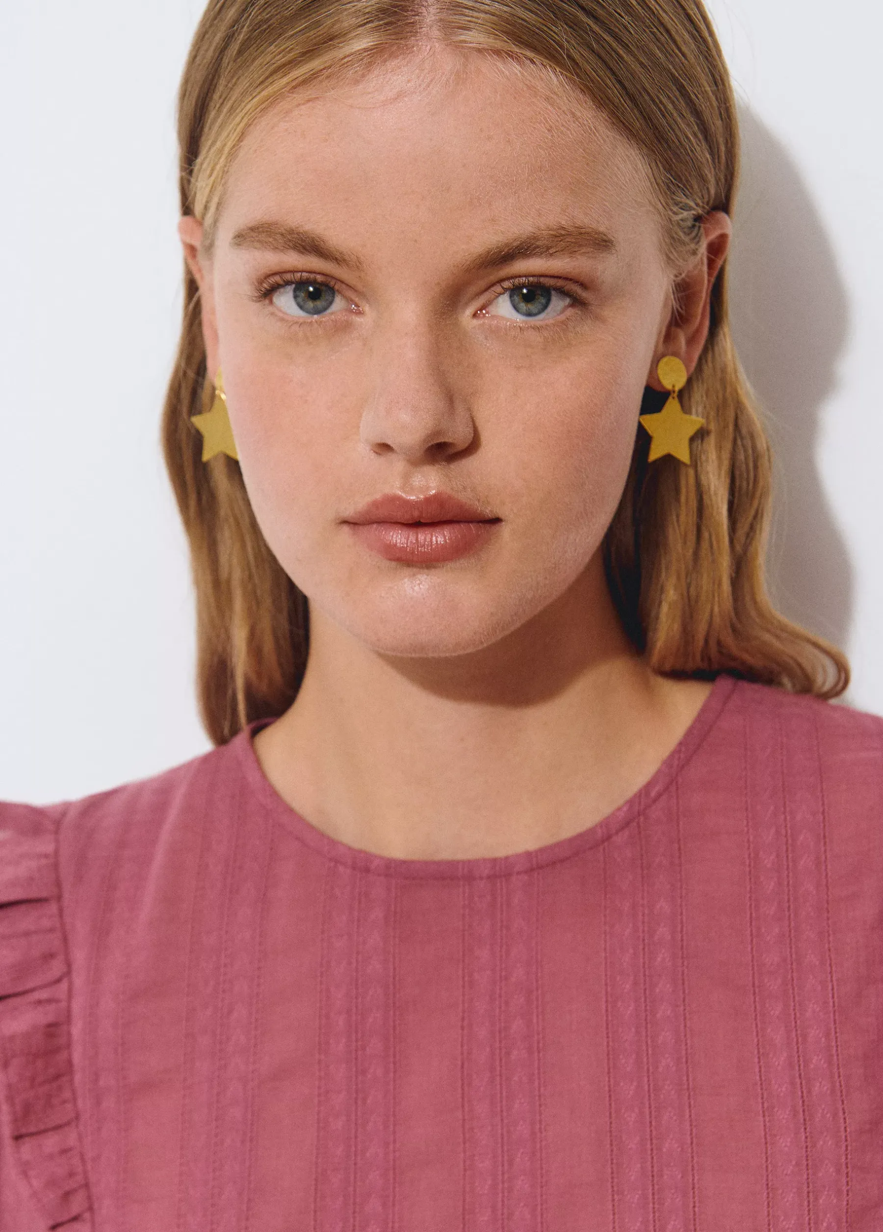 Pendientes dorados con estrella. Cierre de presión.