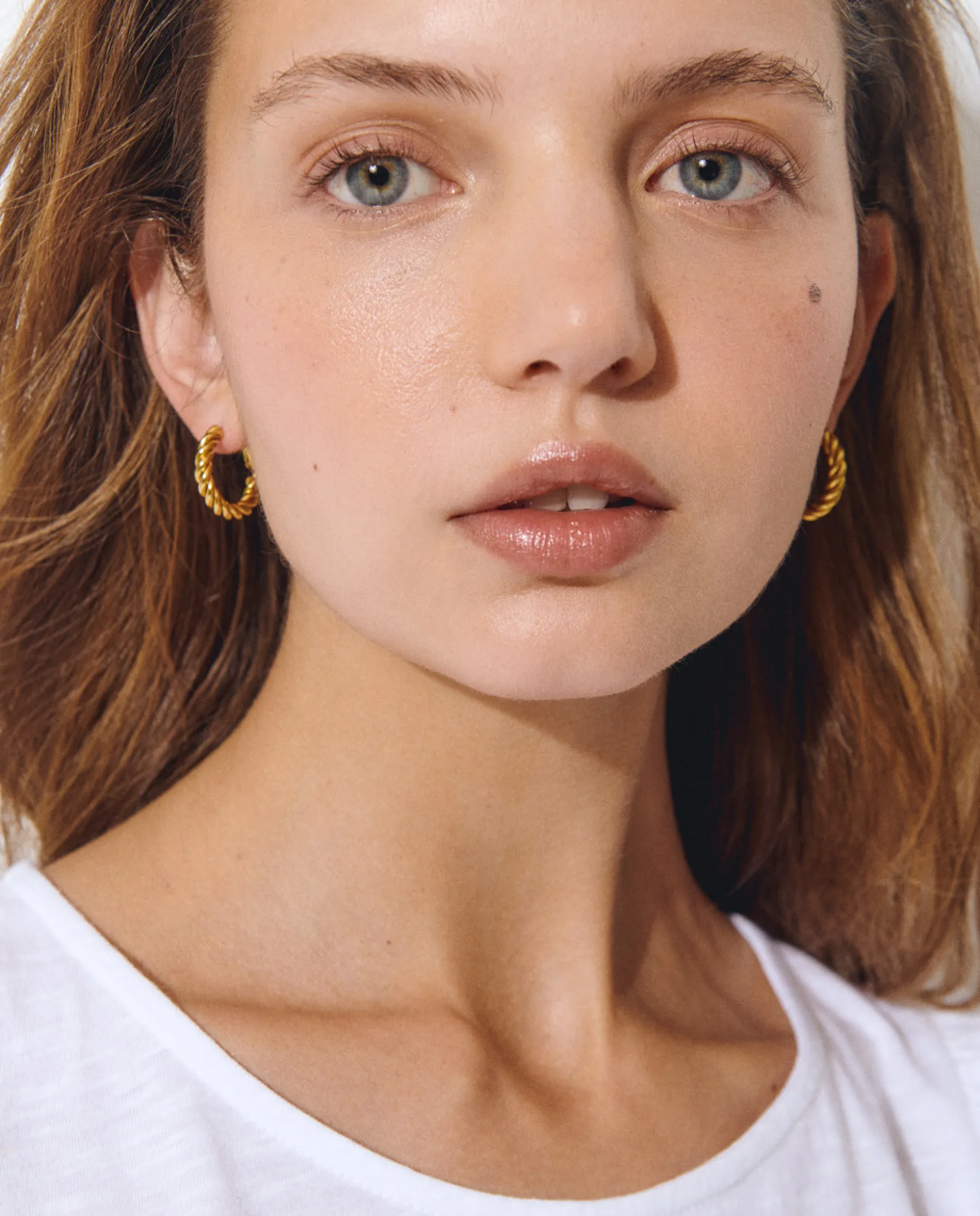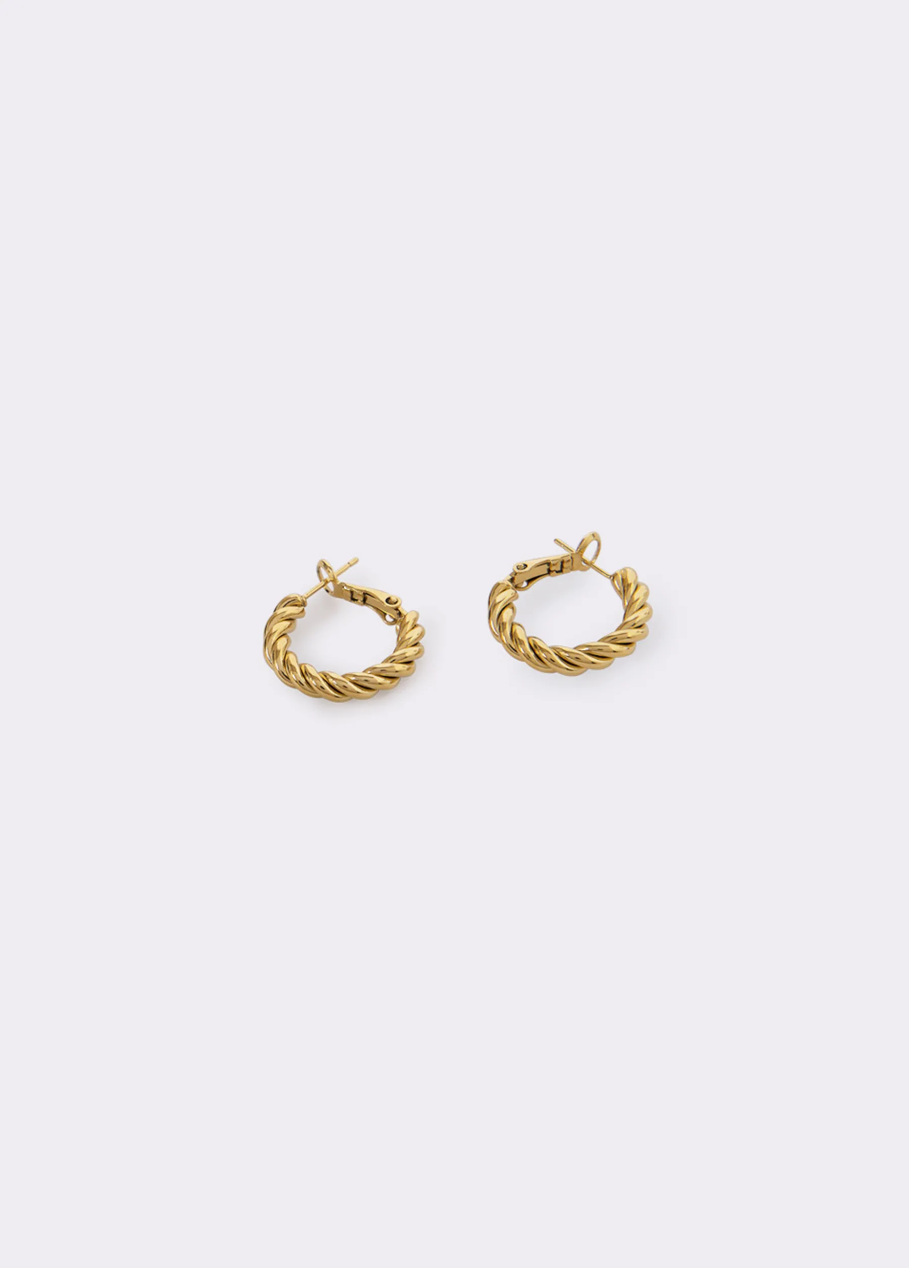 Pendientes de aro pequeños en dorado entrelazados. Cierre catalán.
