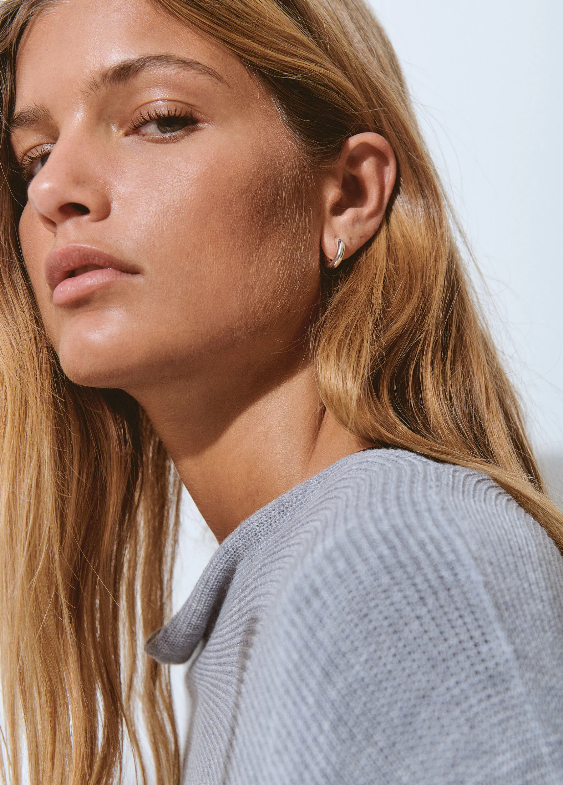 Pendientes plateados de aro grueso pequeños en dorado.