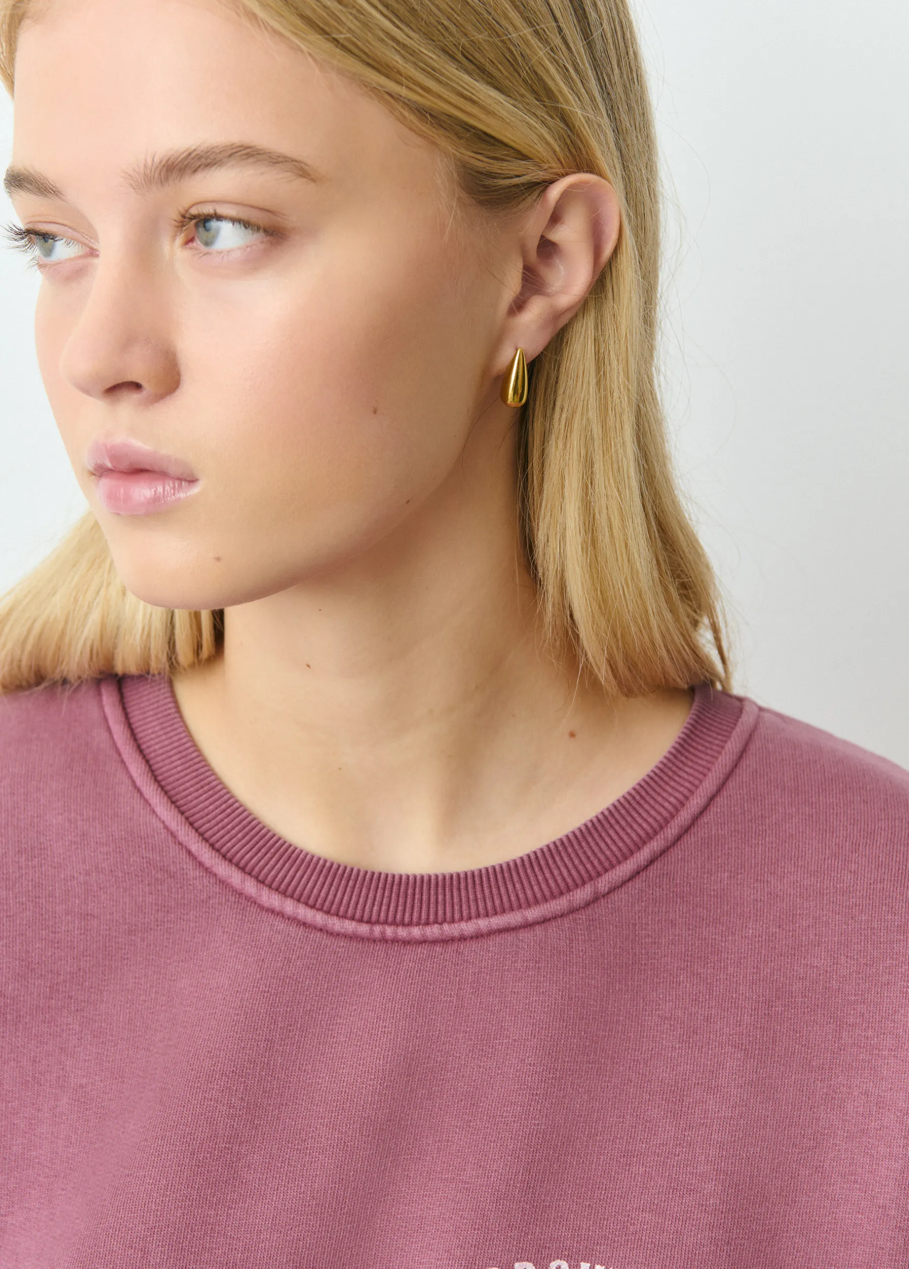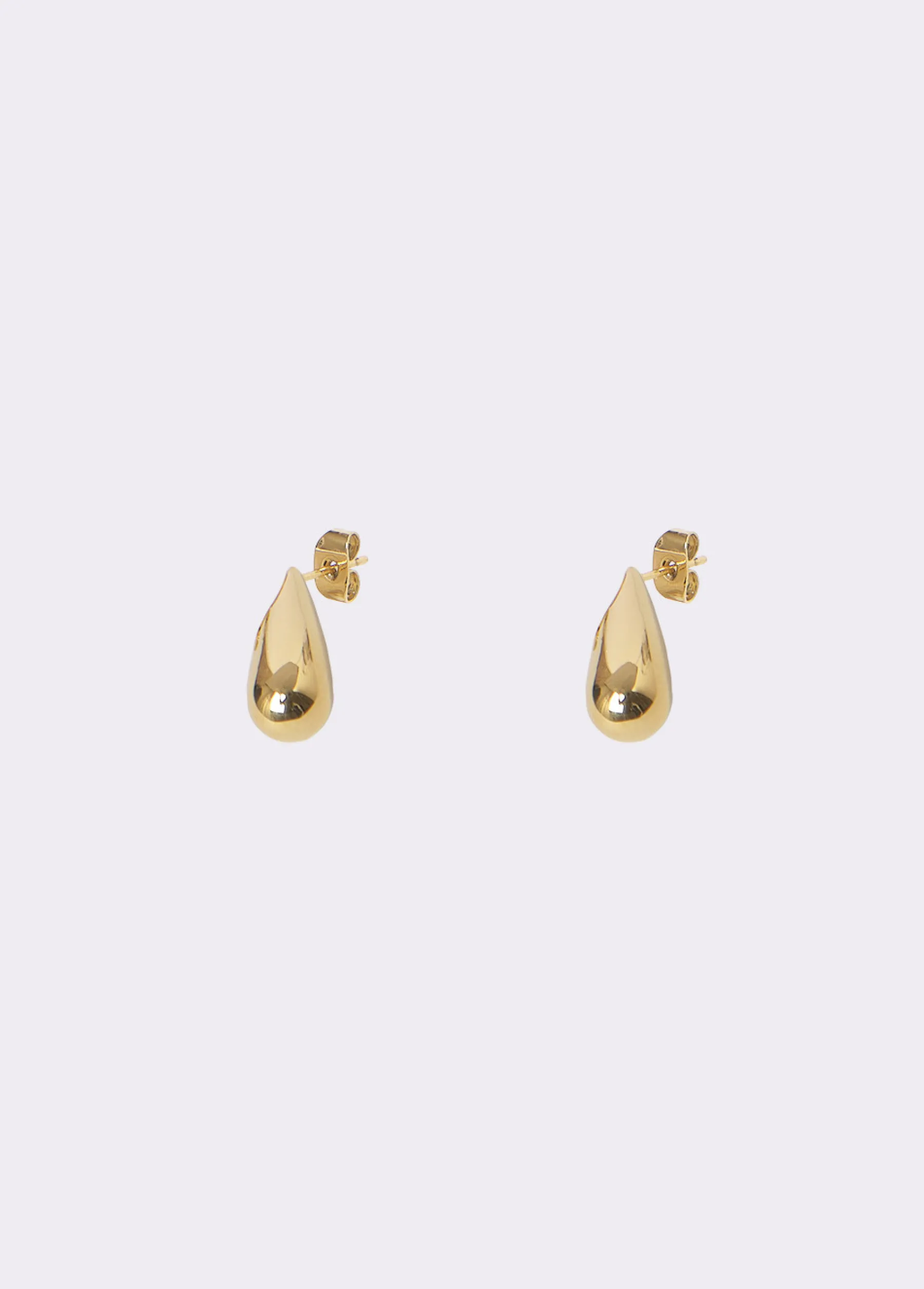 Pendientes dorados en forma de gota. Cierre de gancho.