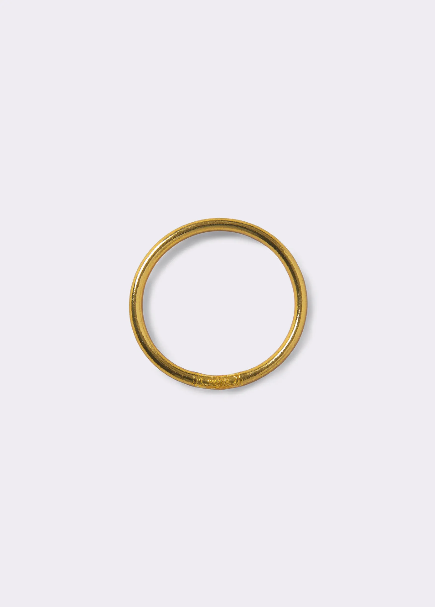 Pulsera dorada Pan de Oro con grabado LUCKY and RICH hechas a mano. Las pulseras Pan de Oro difunden amor, suerte, protección, unidad y buena fortuna para quien las lleva.