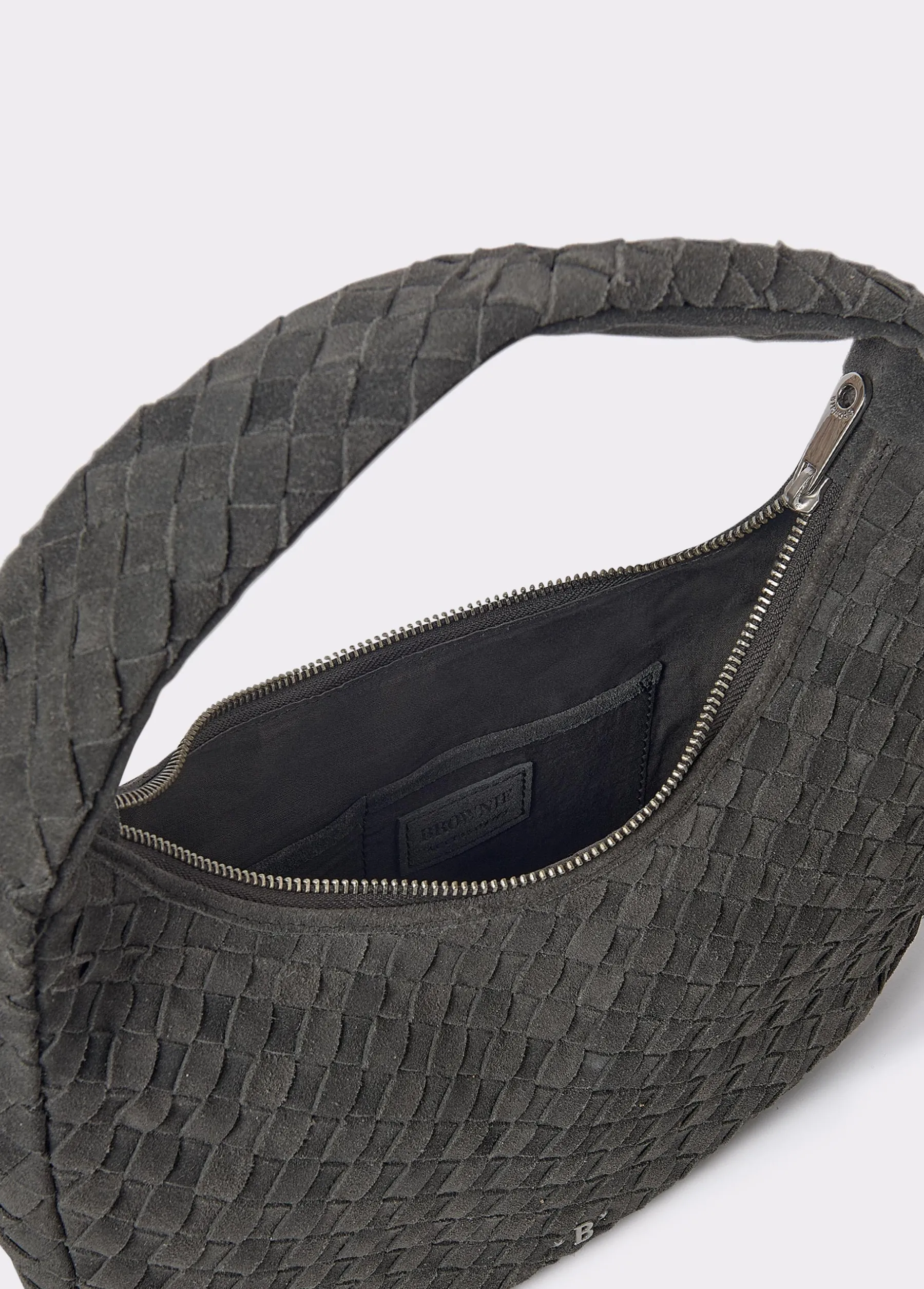 Bolso de hombro de piel trenzado en color gris. Cierre mediante cremallera.