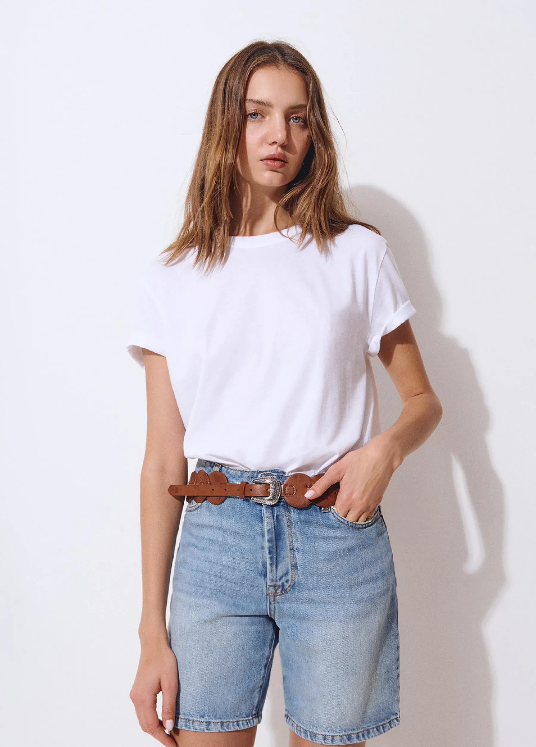 Camiseta básica de algodón de manga corta y cuello redondo.