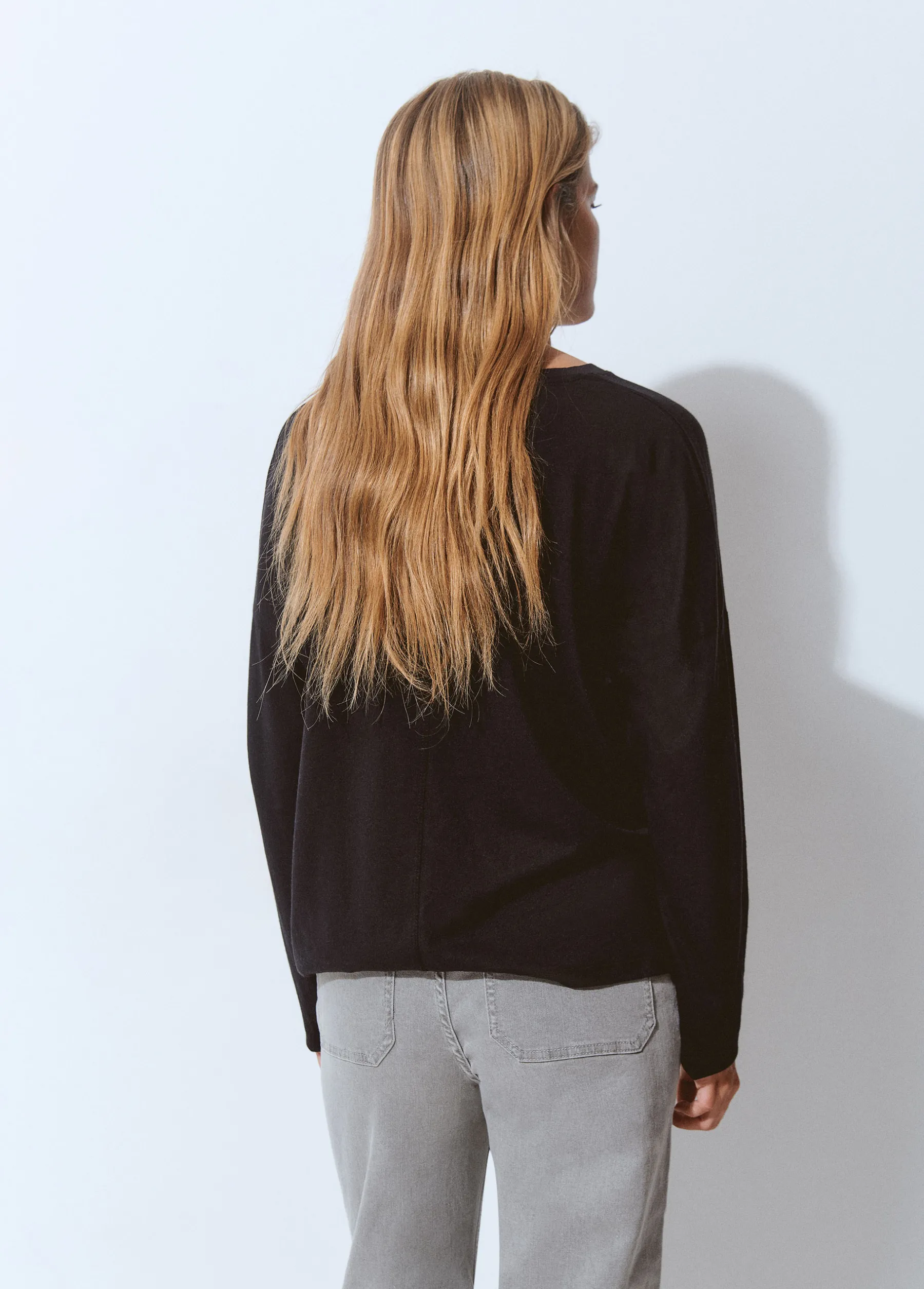 Camiseta lisa de manga larga con cuello redondo.