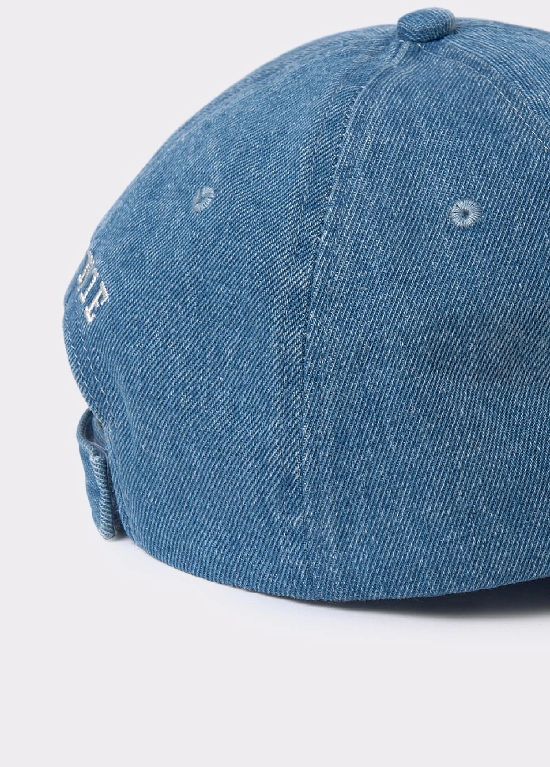 Gorra denim con mensaje en el frontal bordado. Cierre ajustable mediante velcro.