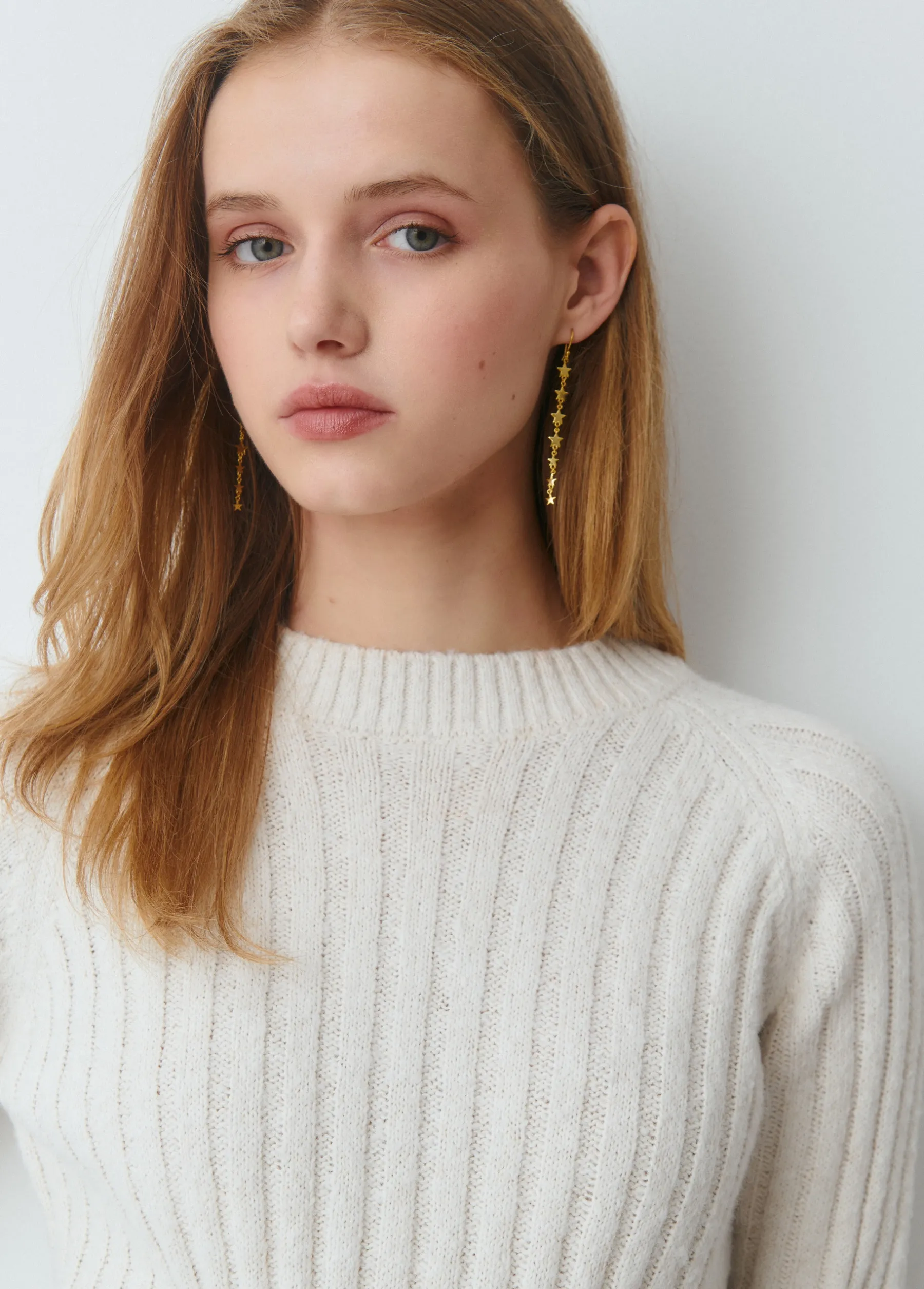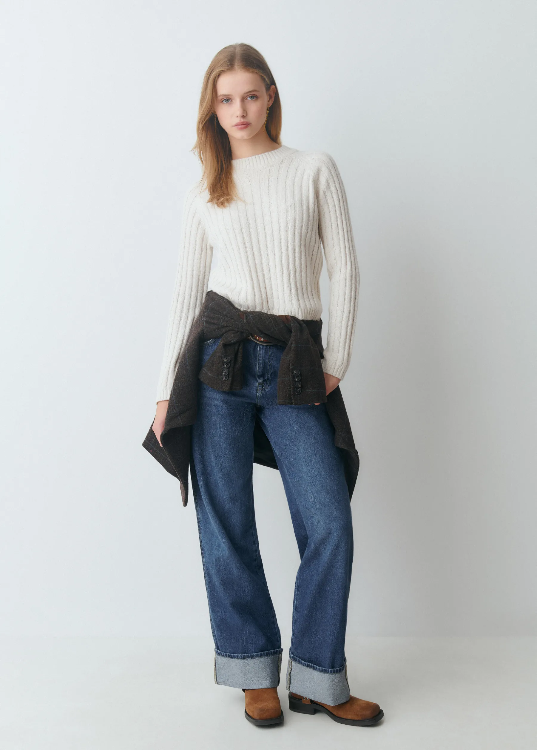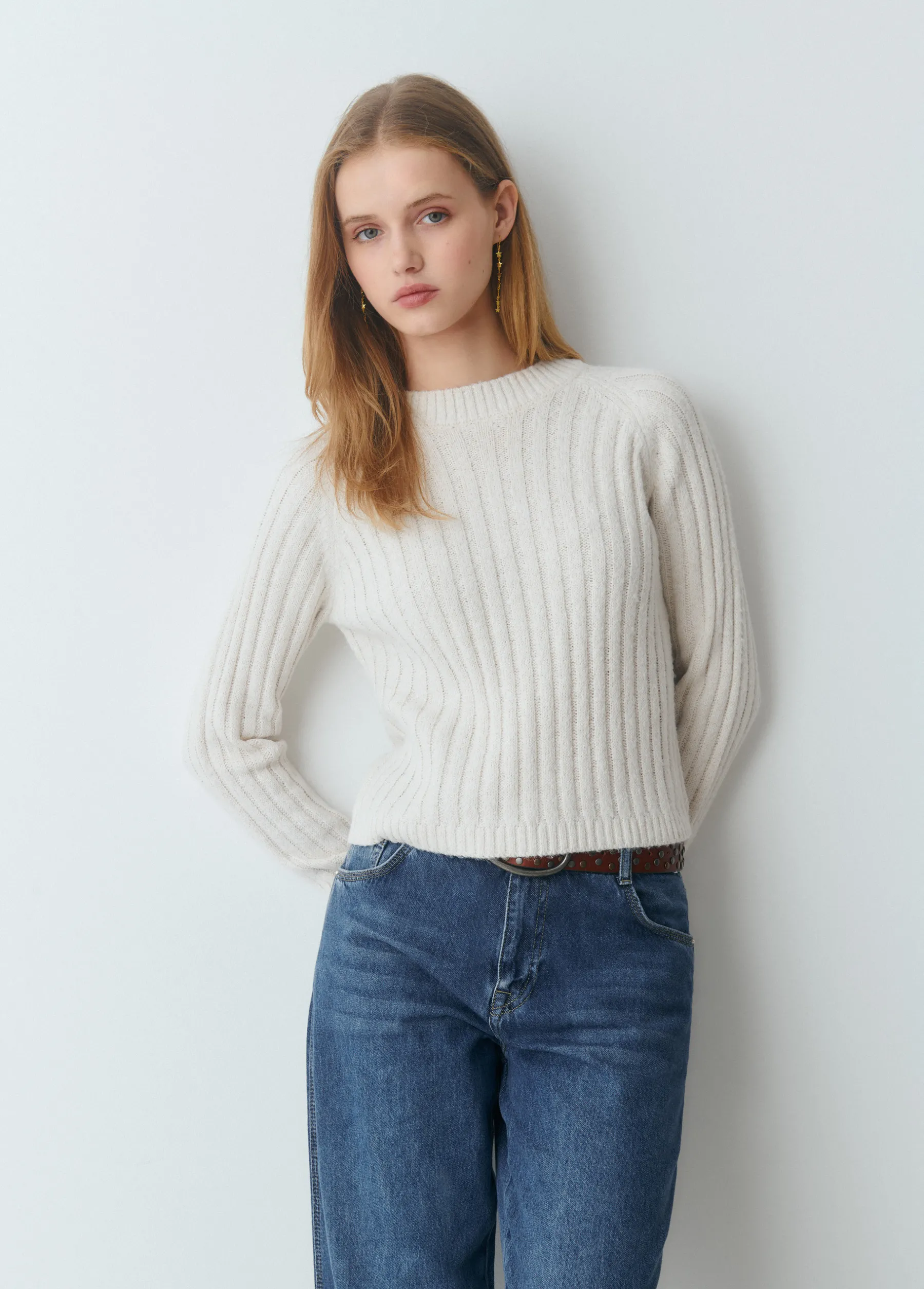 Jersey de canalé de manga larga y cuello redondo.