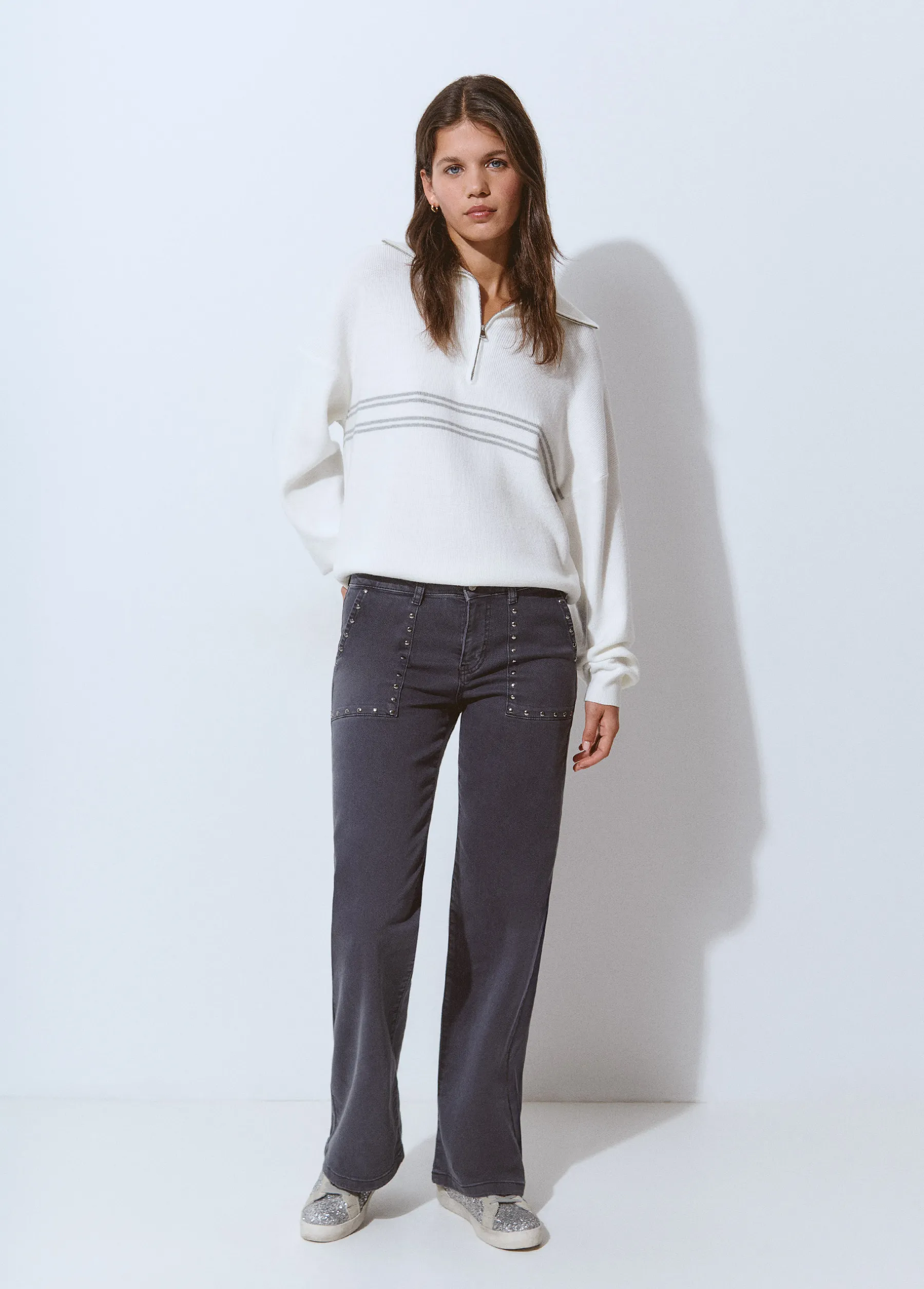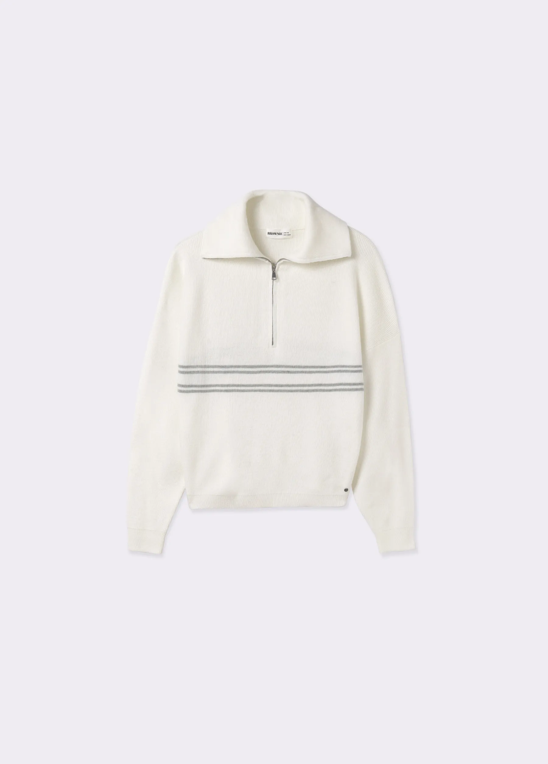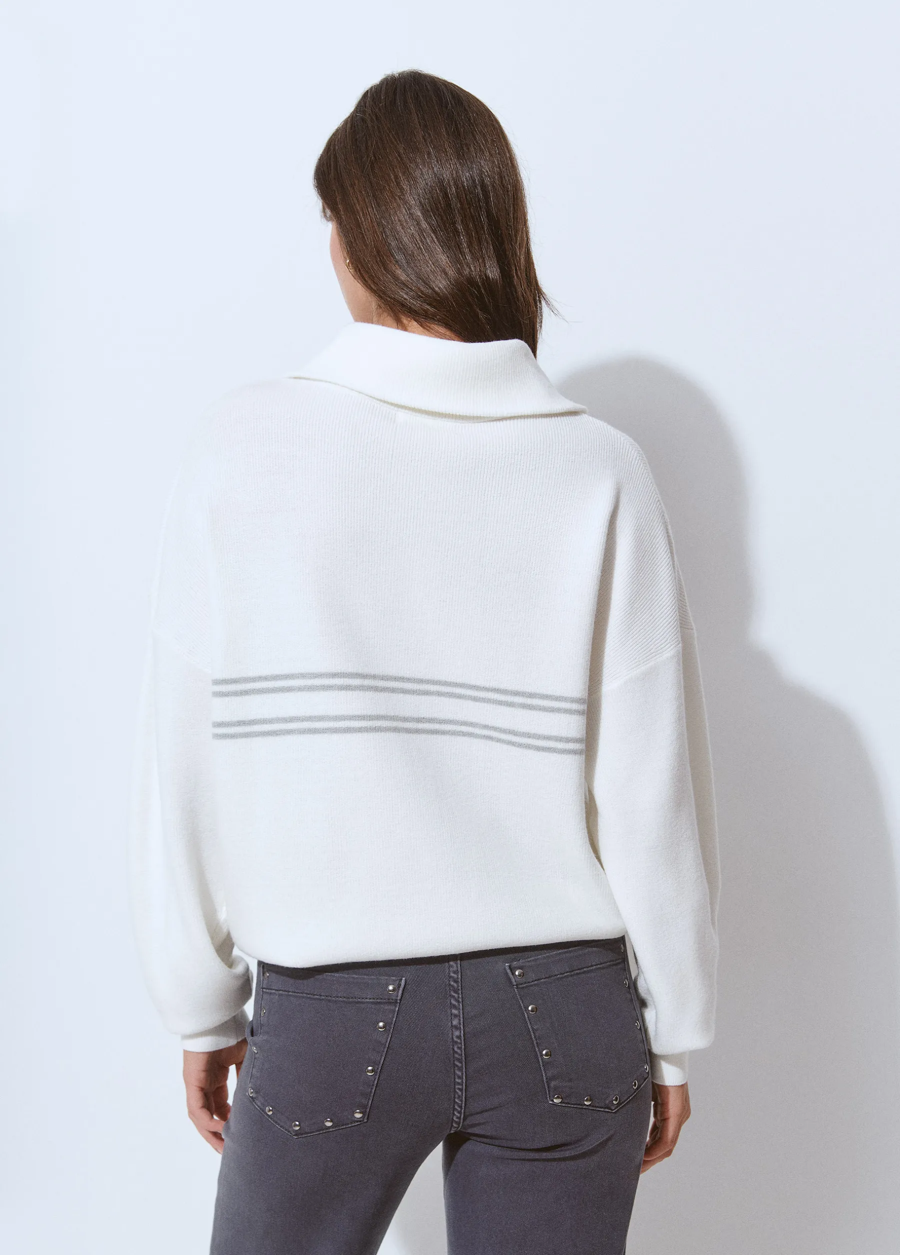 Jersey de manga larga, cuello con solapas y cremallera y detalle de rayas.