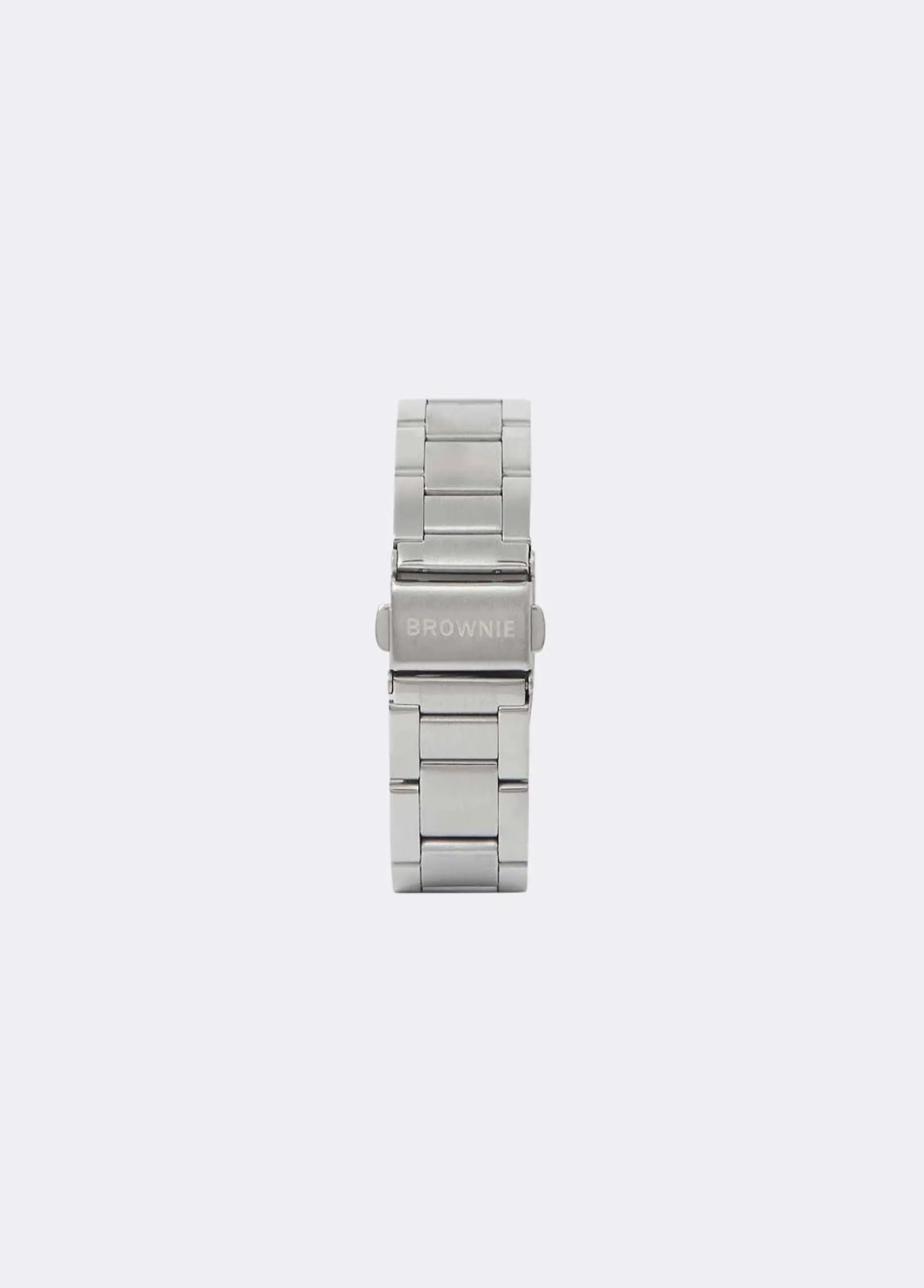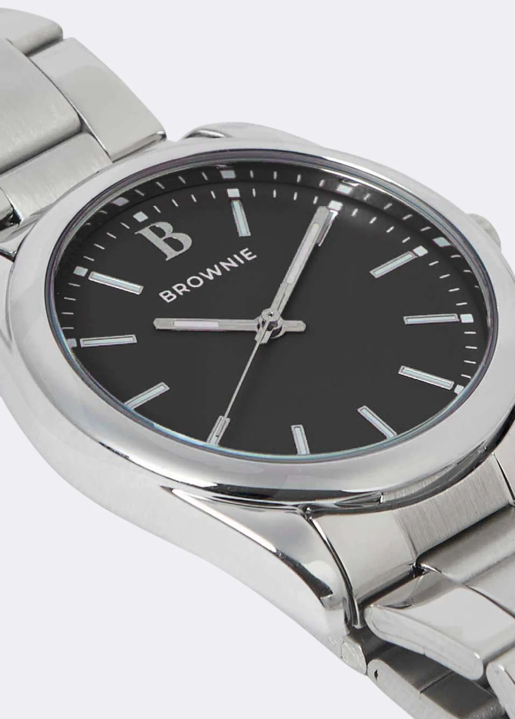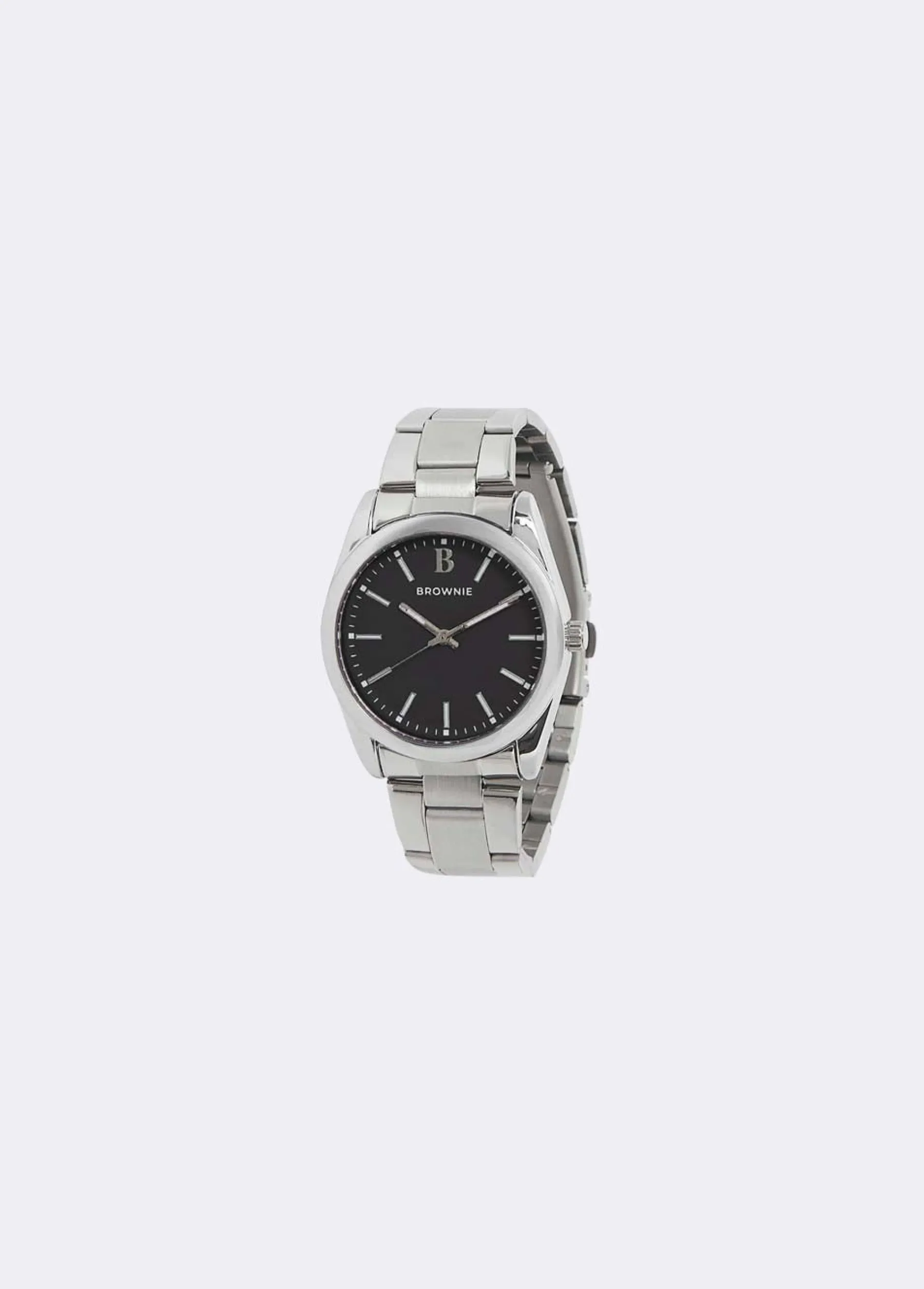 Reloj en acero inoxidable de 36 milímetros con esfera en color negro y detalle de B en la parte superior.