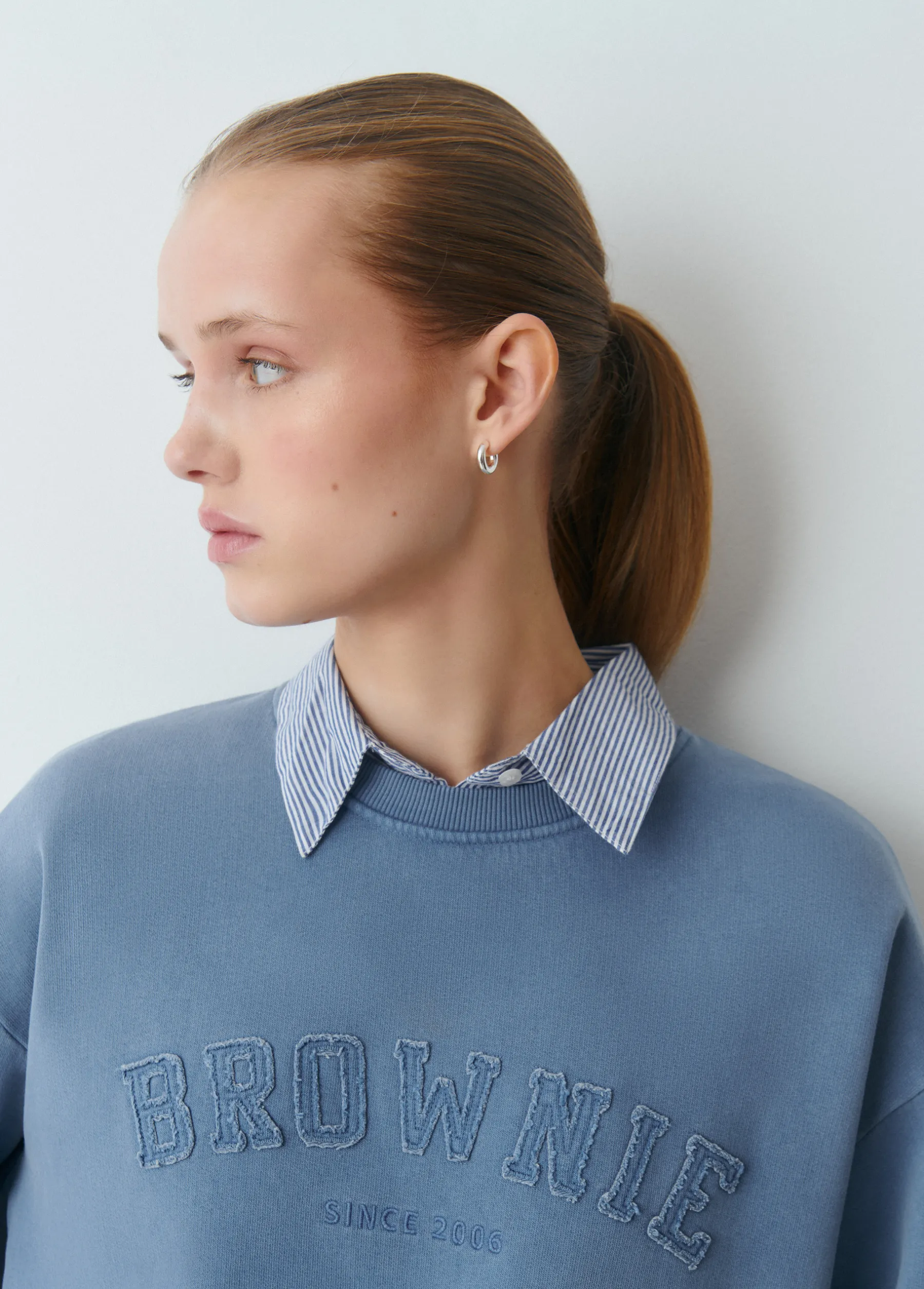 Sudadera de manga larga, cuello redondo y logo Brownie desflecado en el frontal.