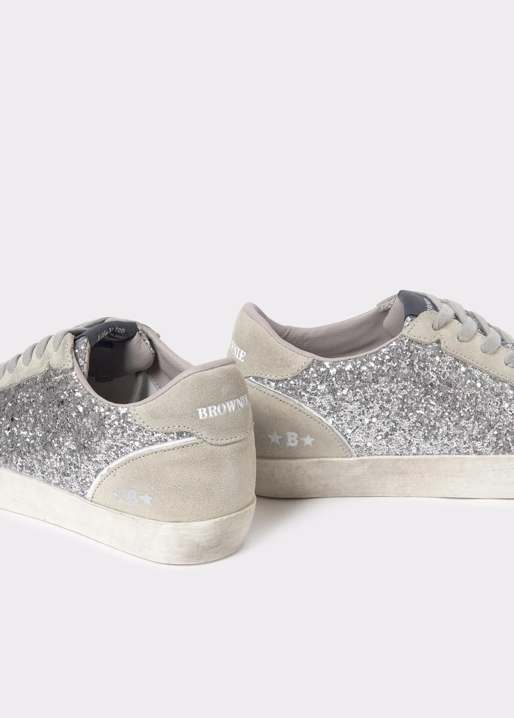 Zapatillas deportivas bajas con detalle de glitter en color plata.