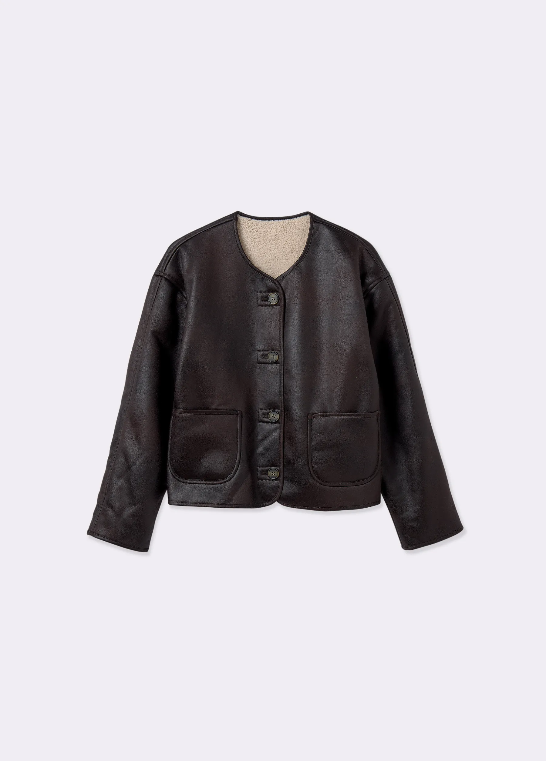 Chaqueta reversible efecto piel con bolsillos frontales. Cierre mediante botones.