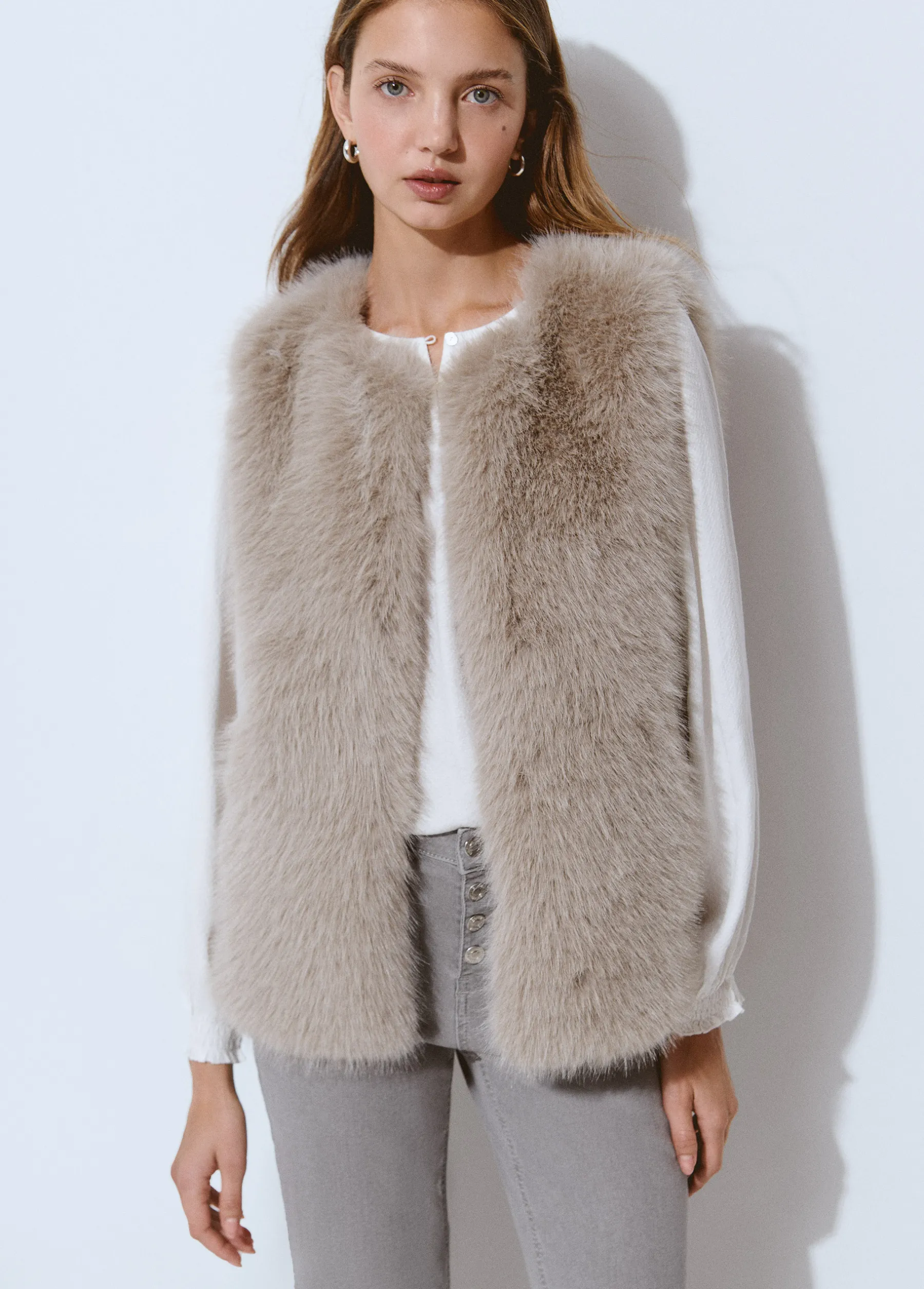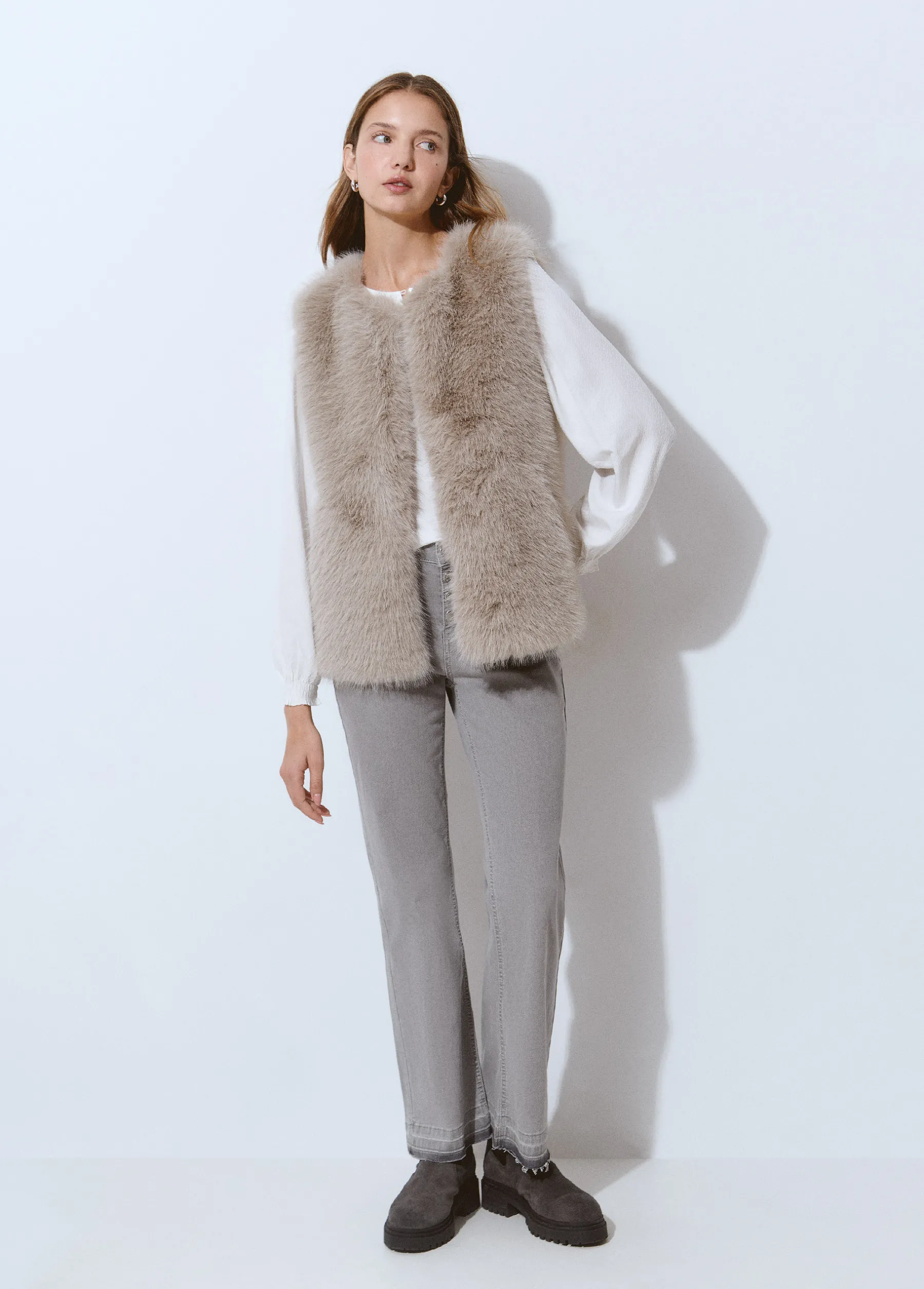 Abrigos Y Chaquetas|Chalecos*Brownie Chaleco efecto pelo Gris