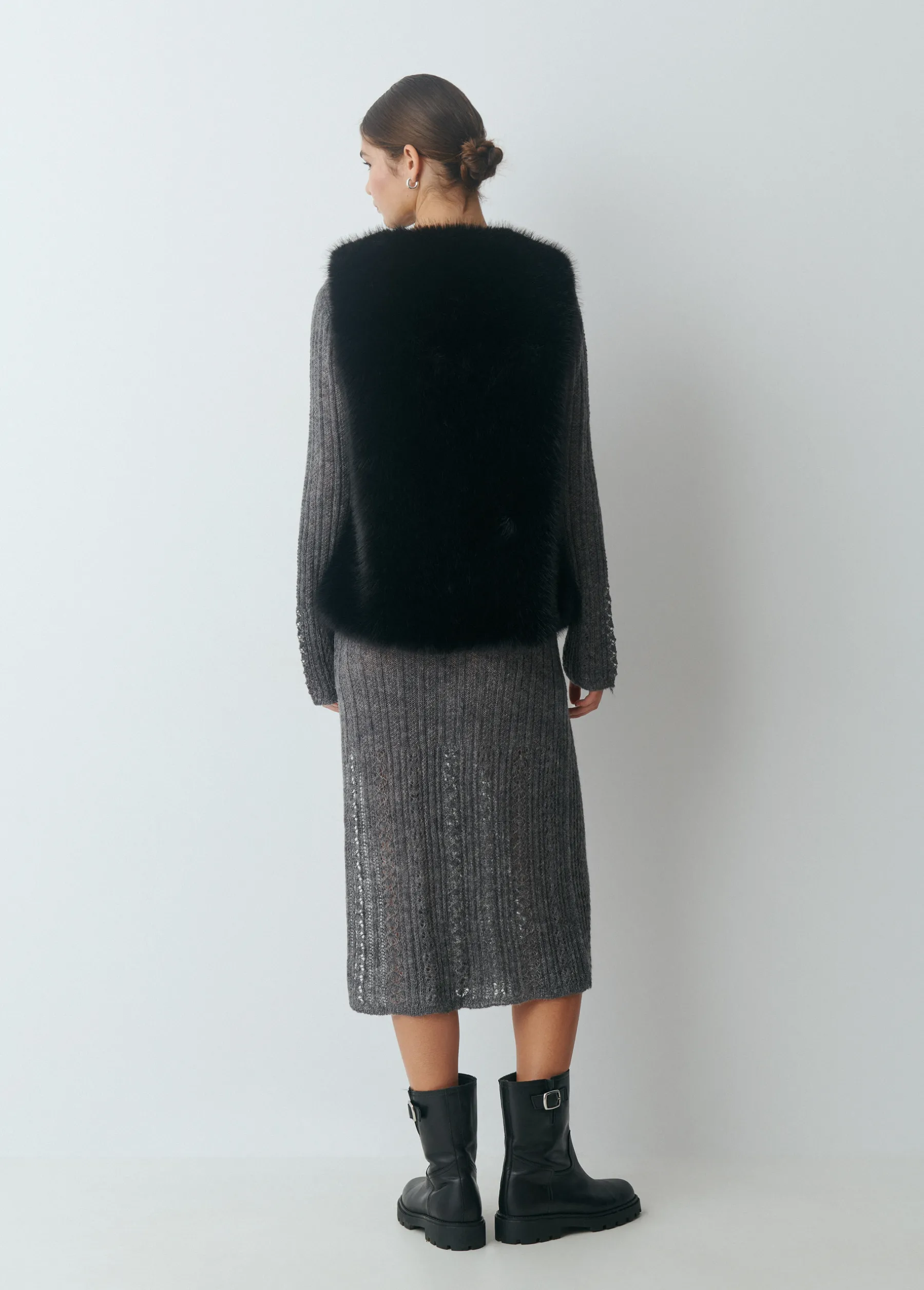 Abrigos Y Chaquetas|Chalecos*Brownie Chaleco efecto pelo Negro