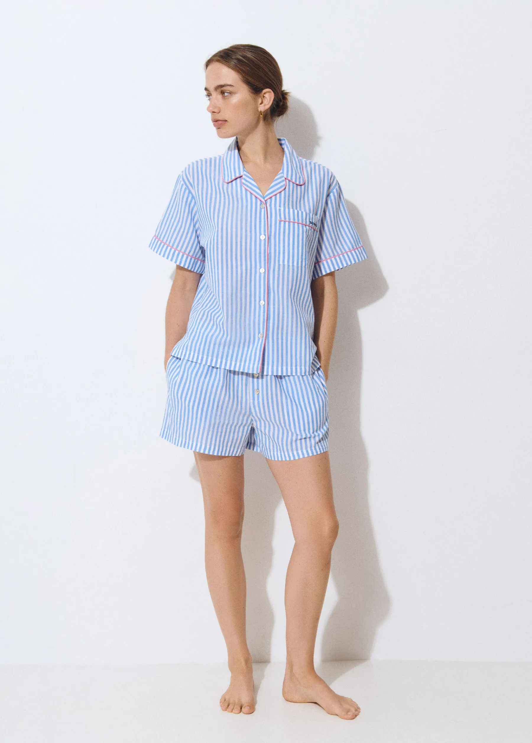 Conjunto de pijama corto de algodón de rayas con camisa de manga corta y short con goma en la cintura.