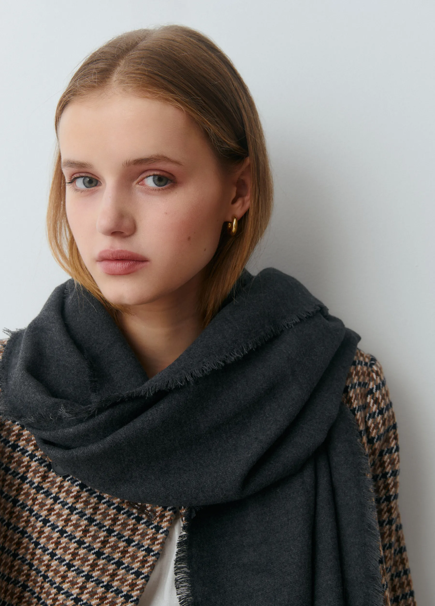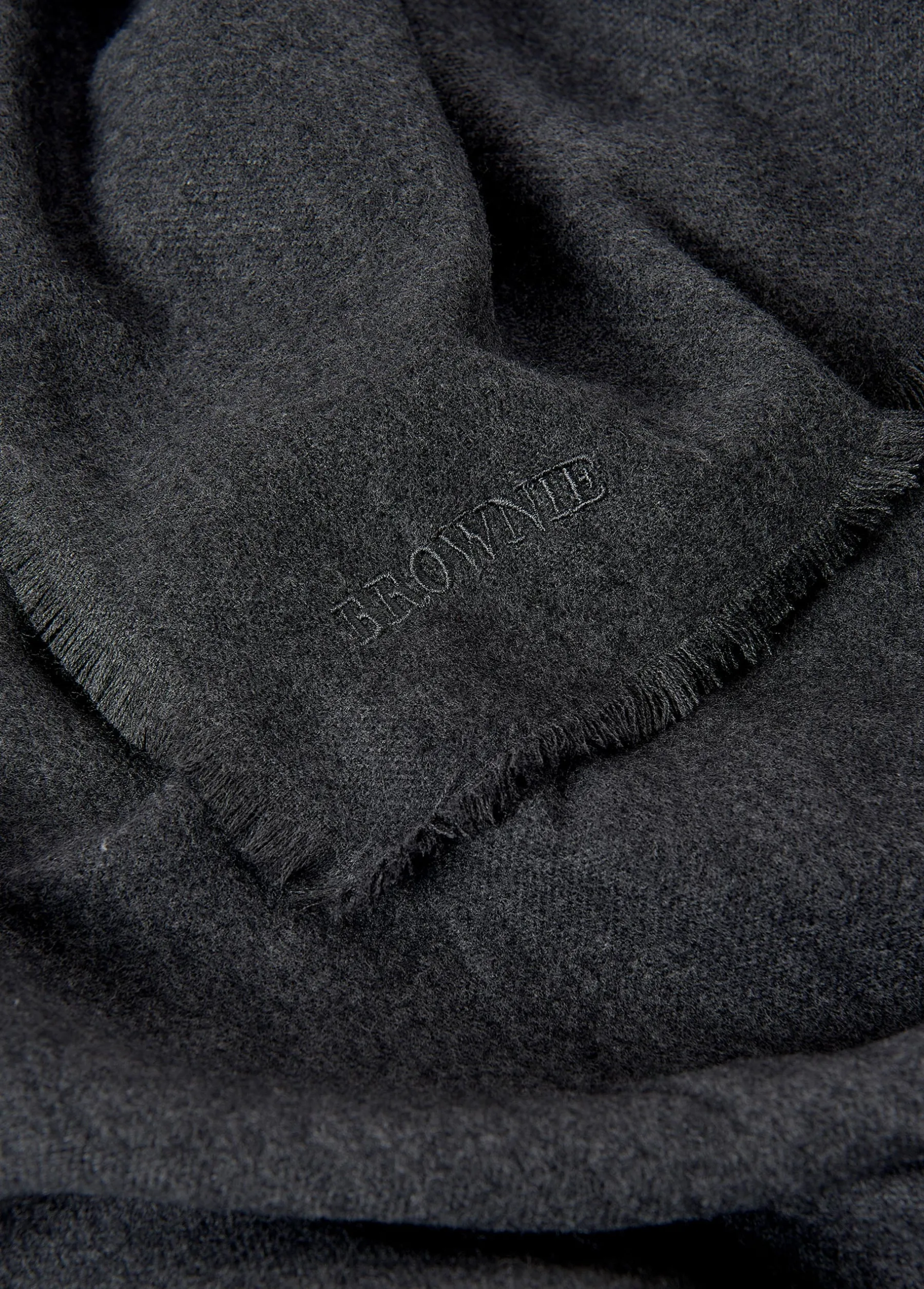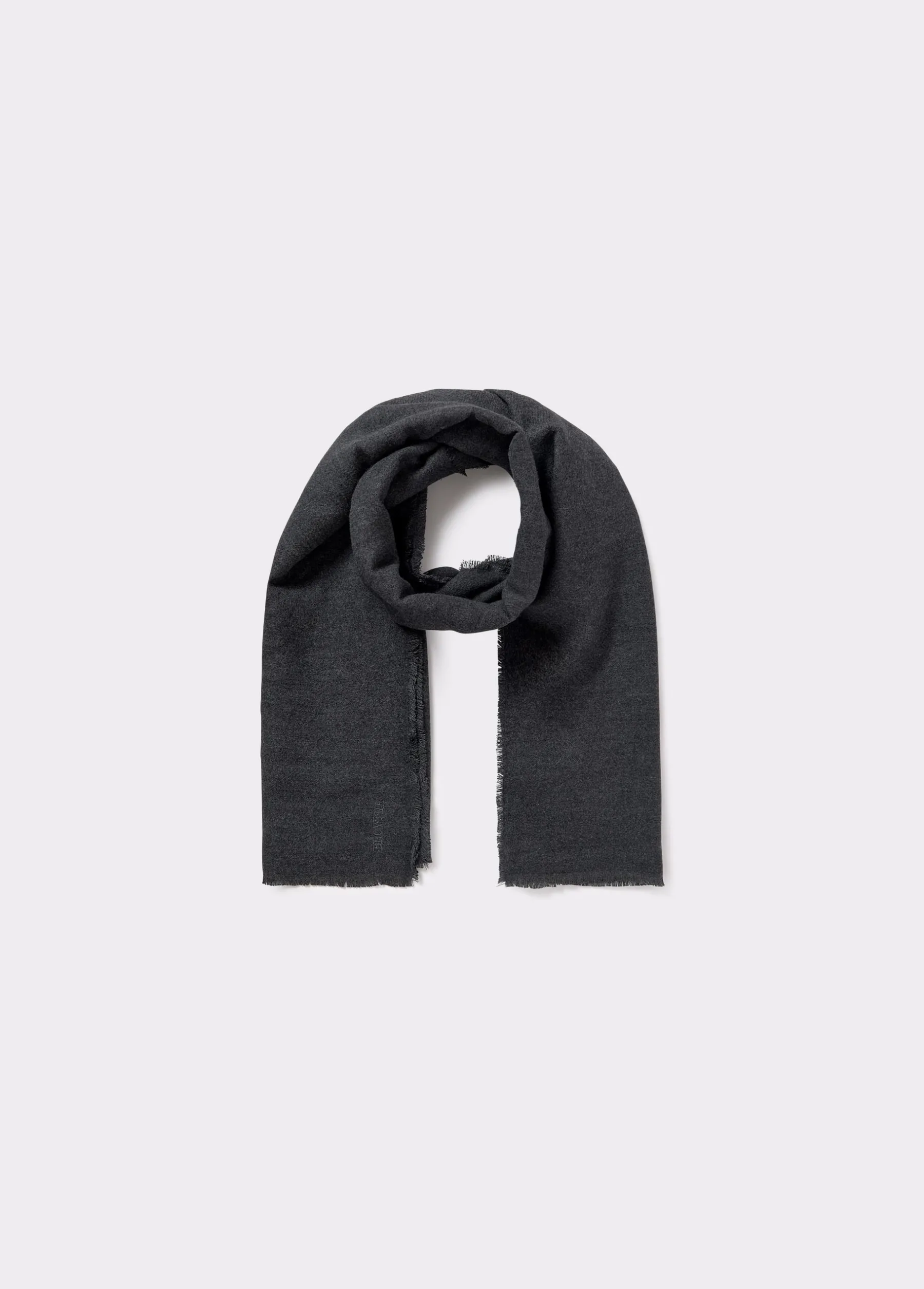 Bufanda lisa fina con tacto suave y acabado en flecos en color antracita.