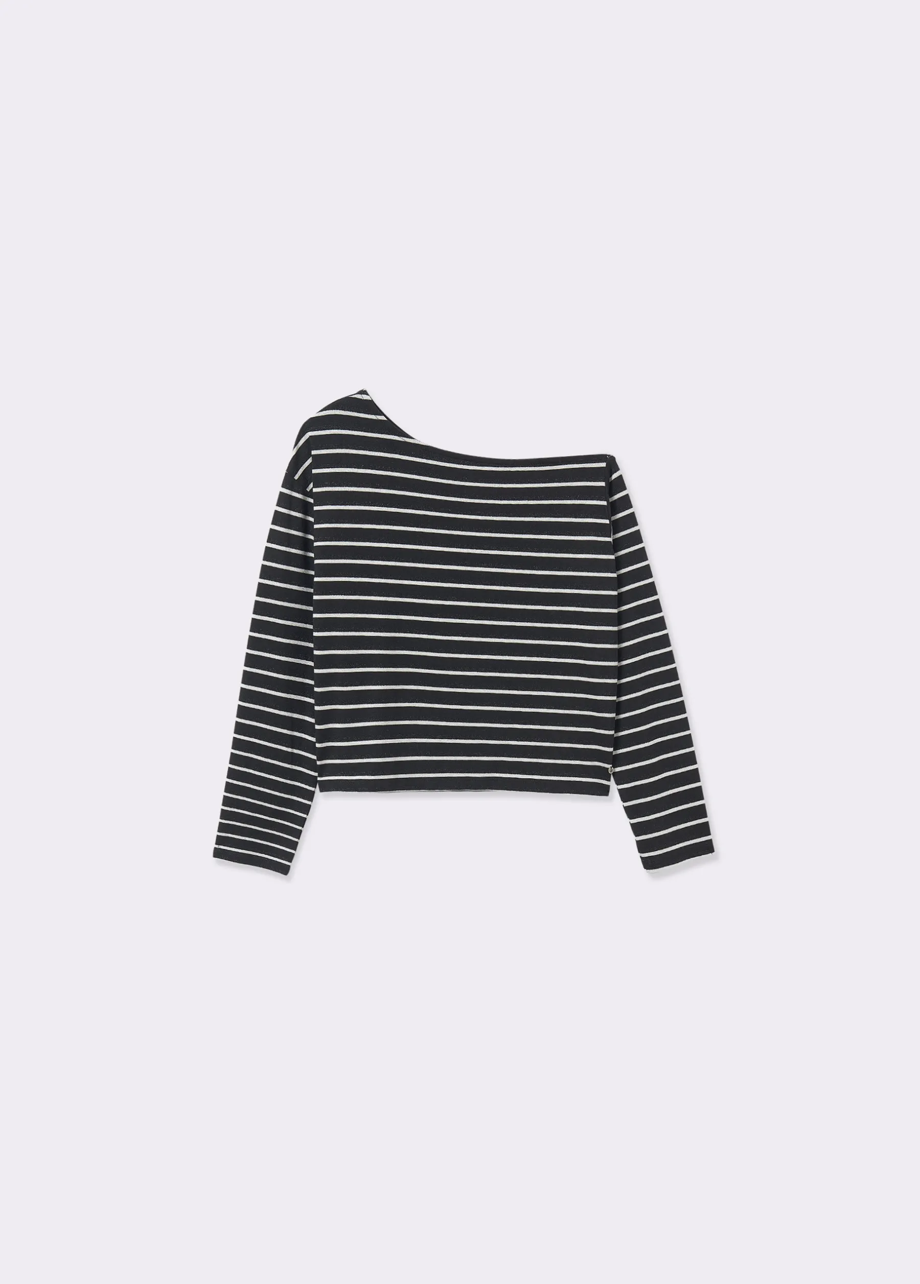 Camiseta de rayas de manga larga, escote de barco y detalles con lurex.