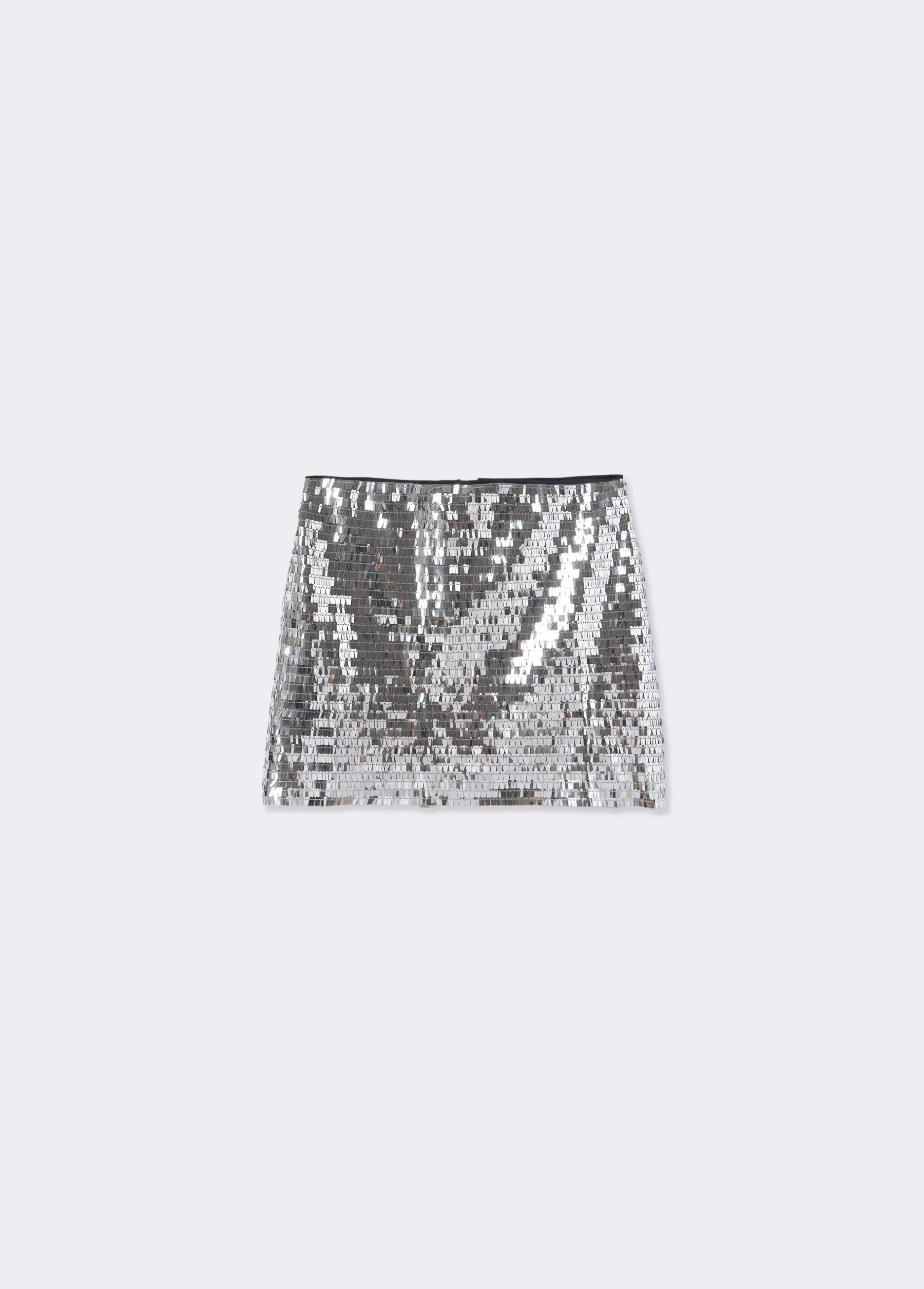 Falda corta con lentejuelas plateadas.