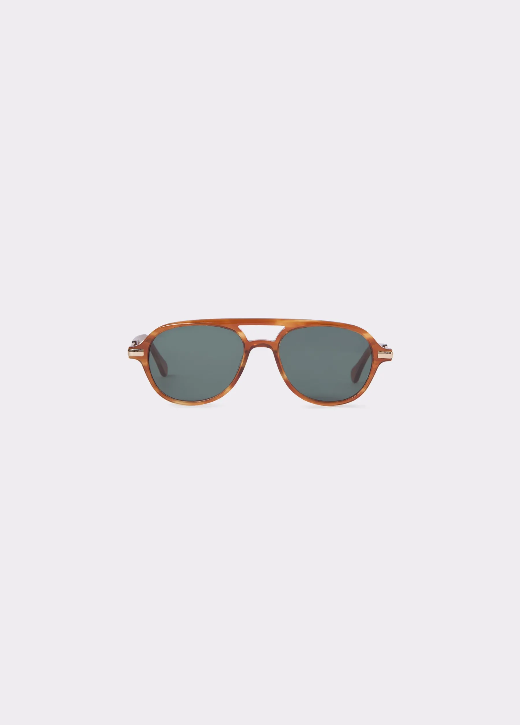 Gafas de sol de aviador con montura redonda en colores marrón y dorado.