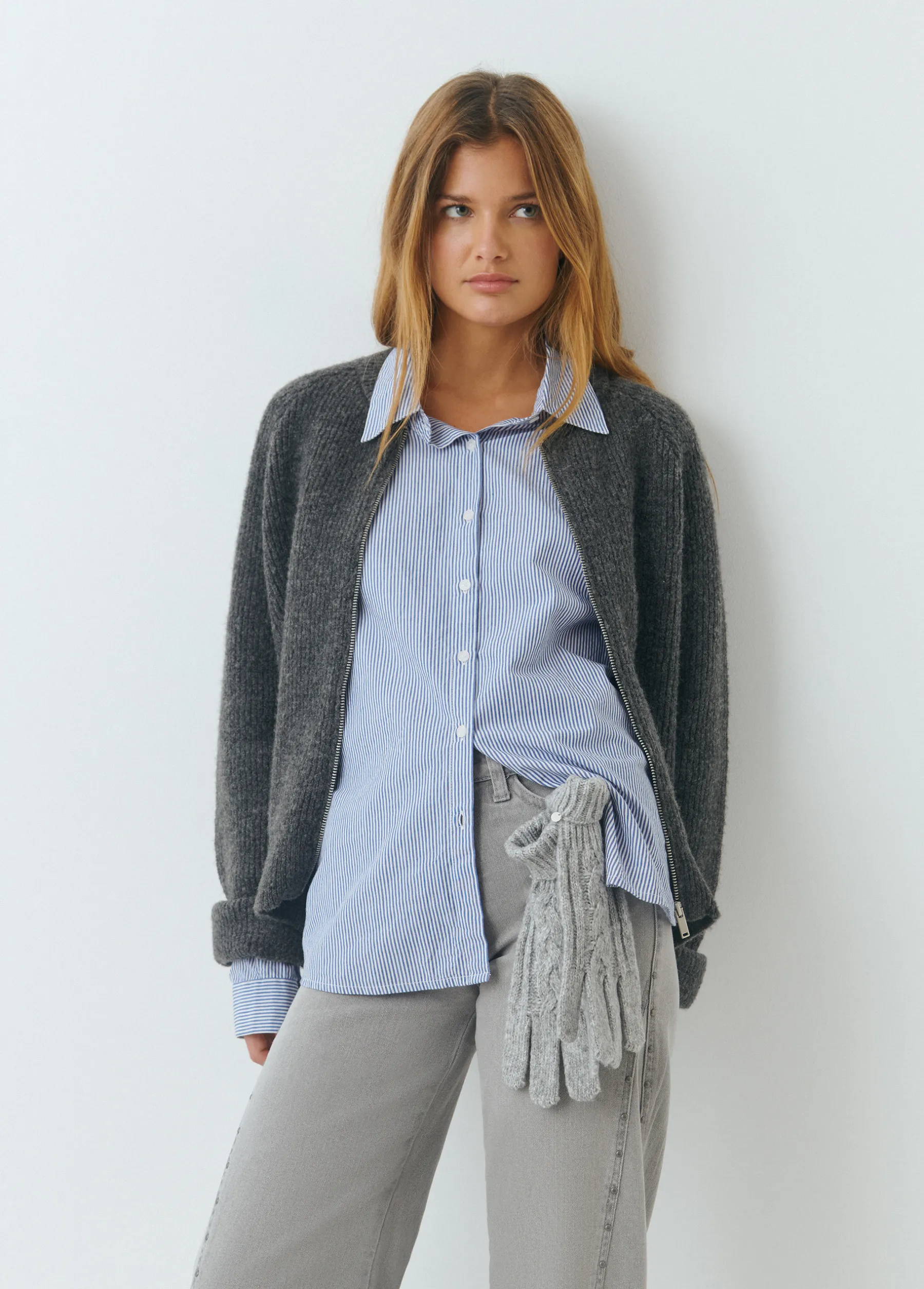 Guantes de mujer trenzados en color gris.