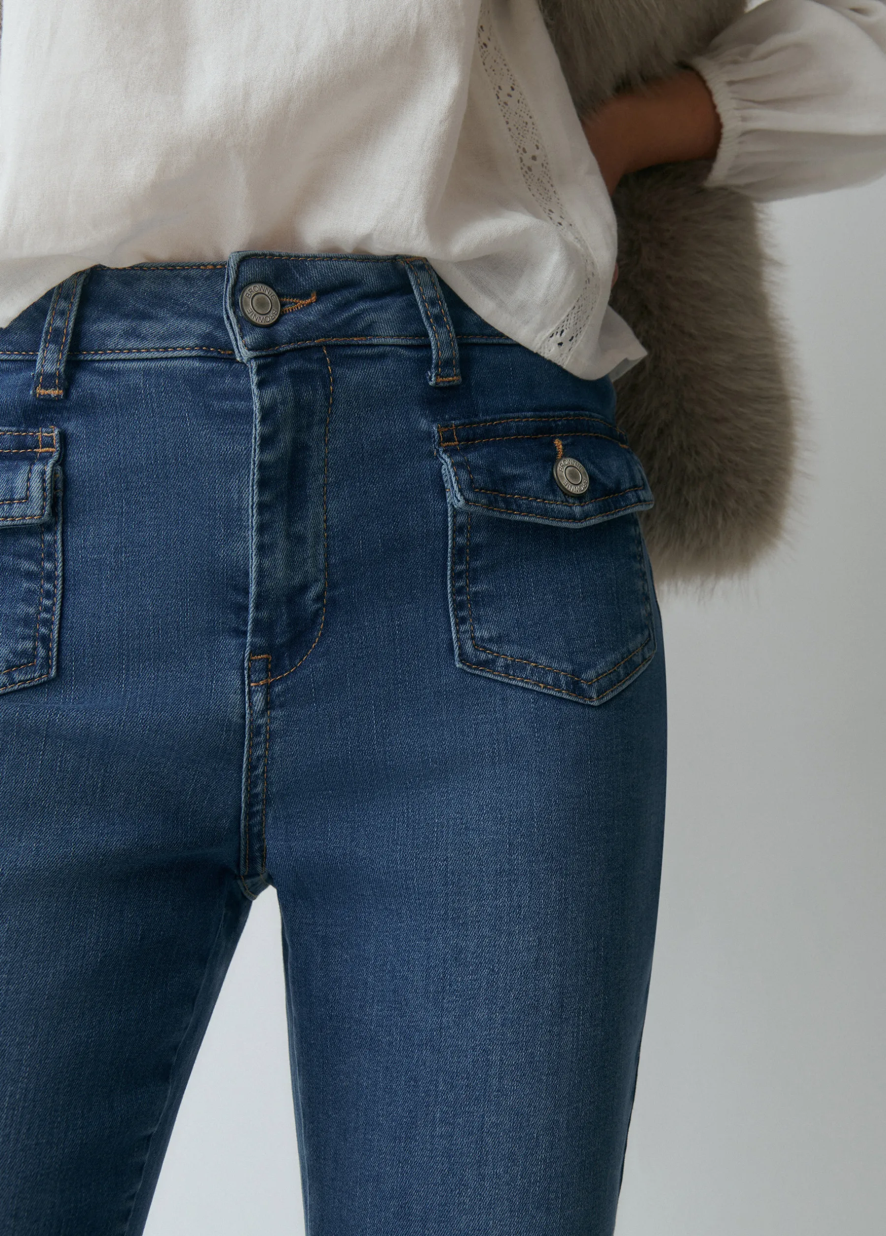 Pantalón culotte de tiro medio con bolsillos cuadrados. Cierre mediante cremallera y botón.