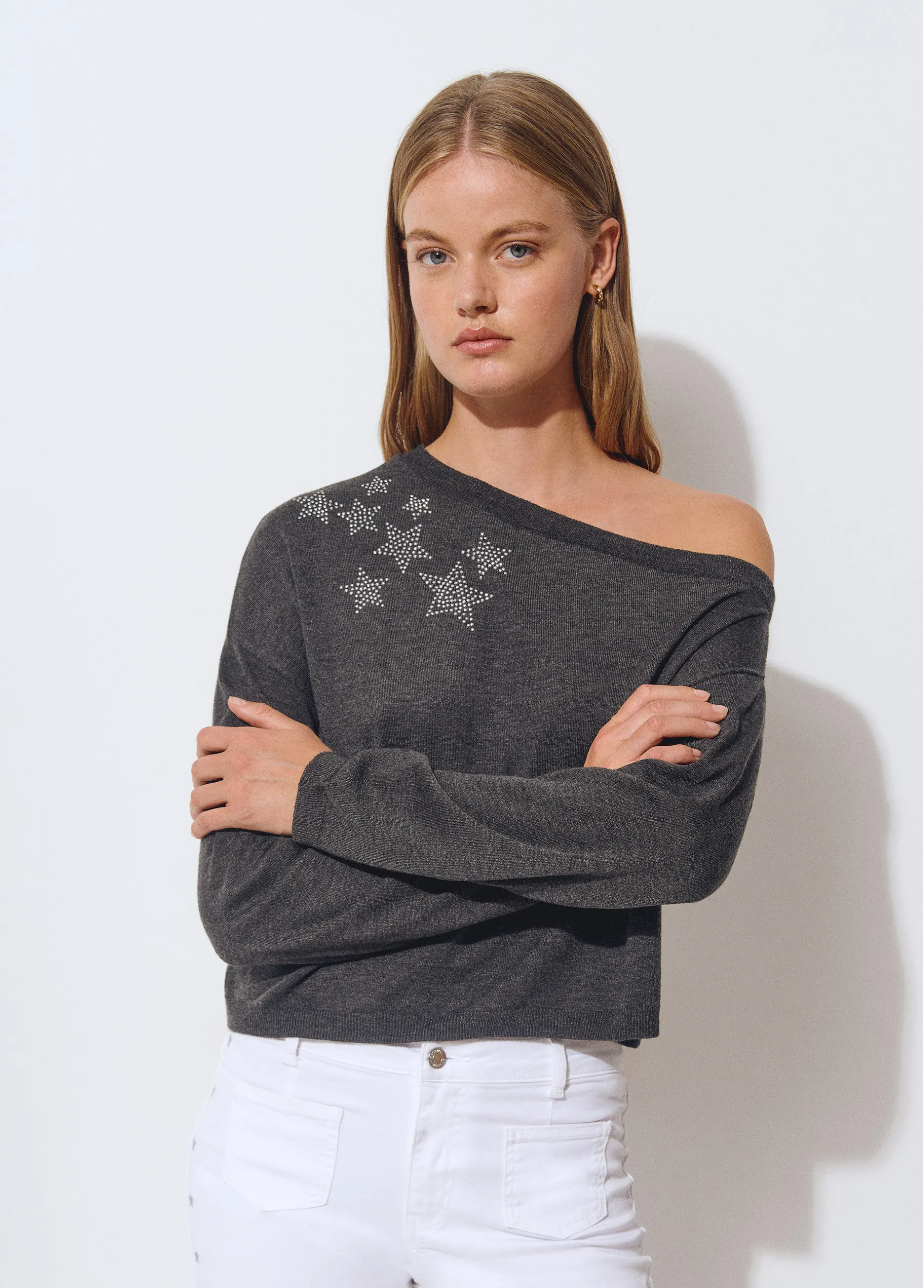 Jersey asimétrico de manga larga con estrellas.