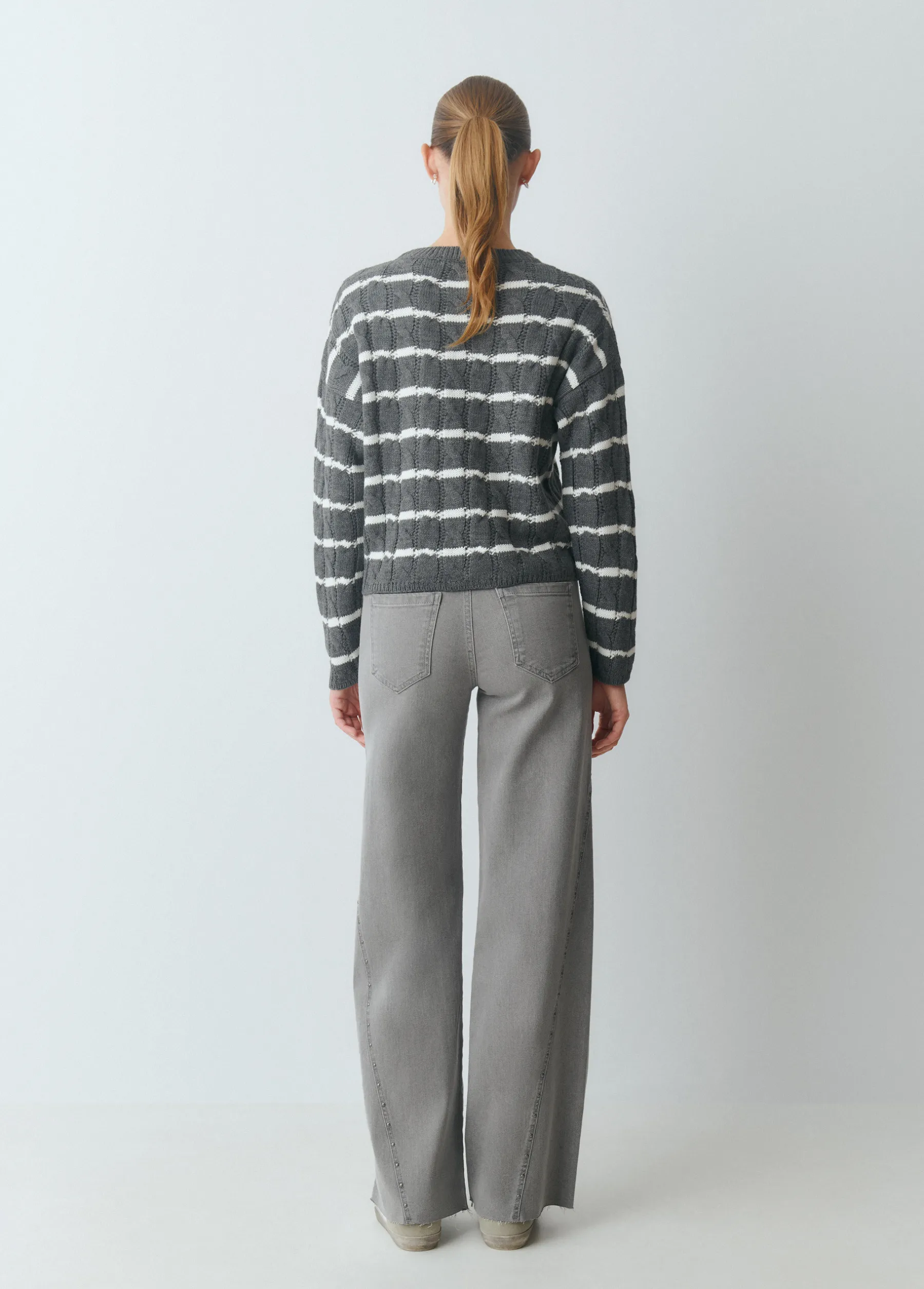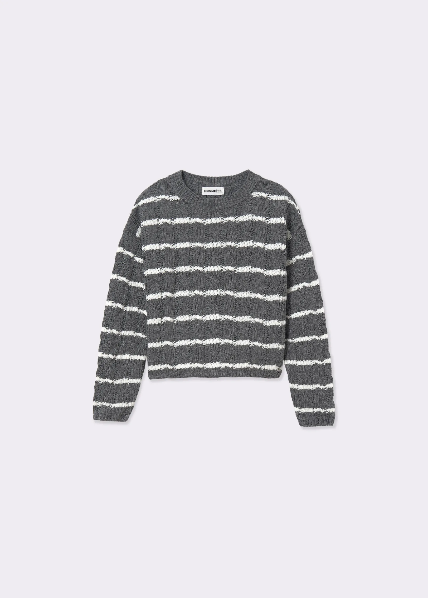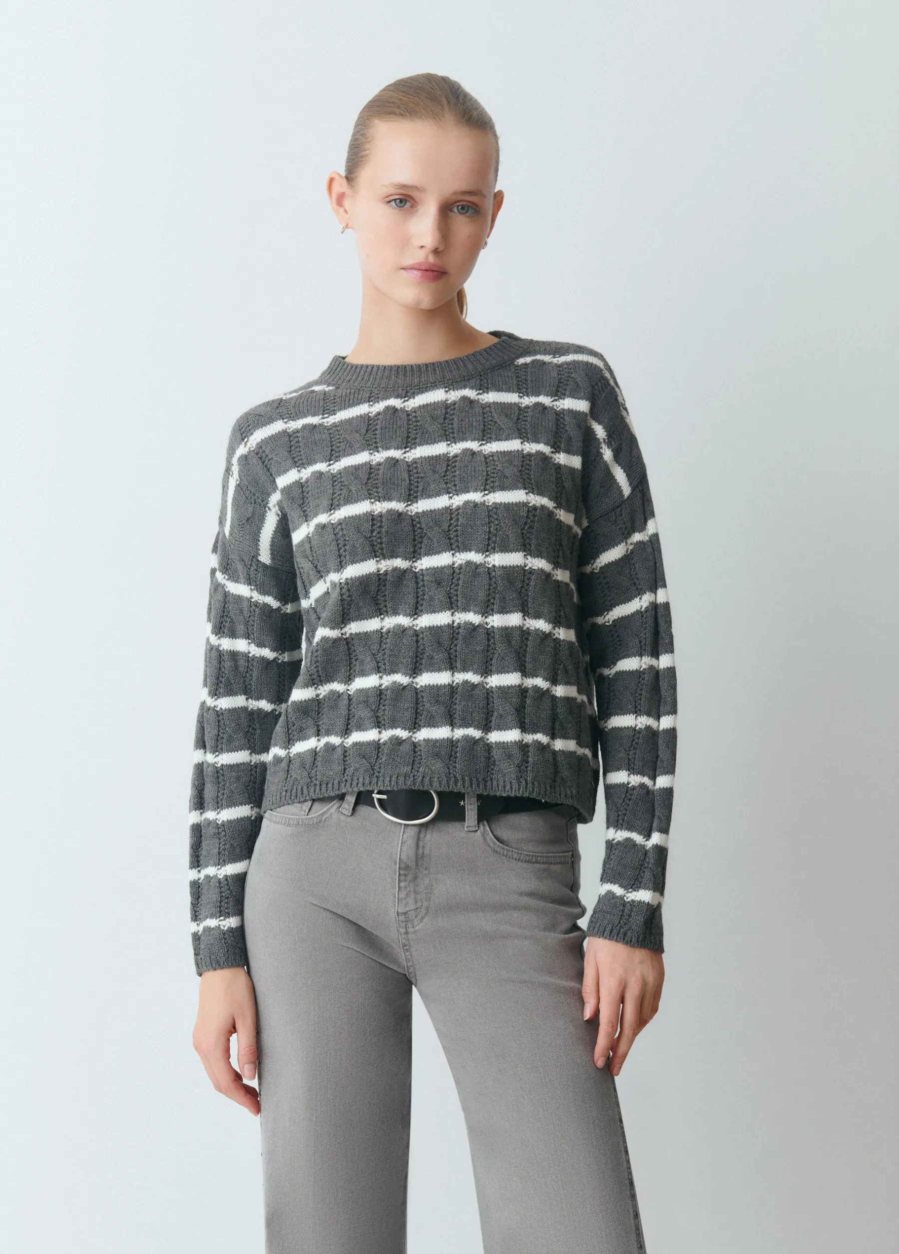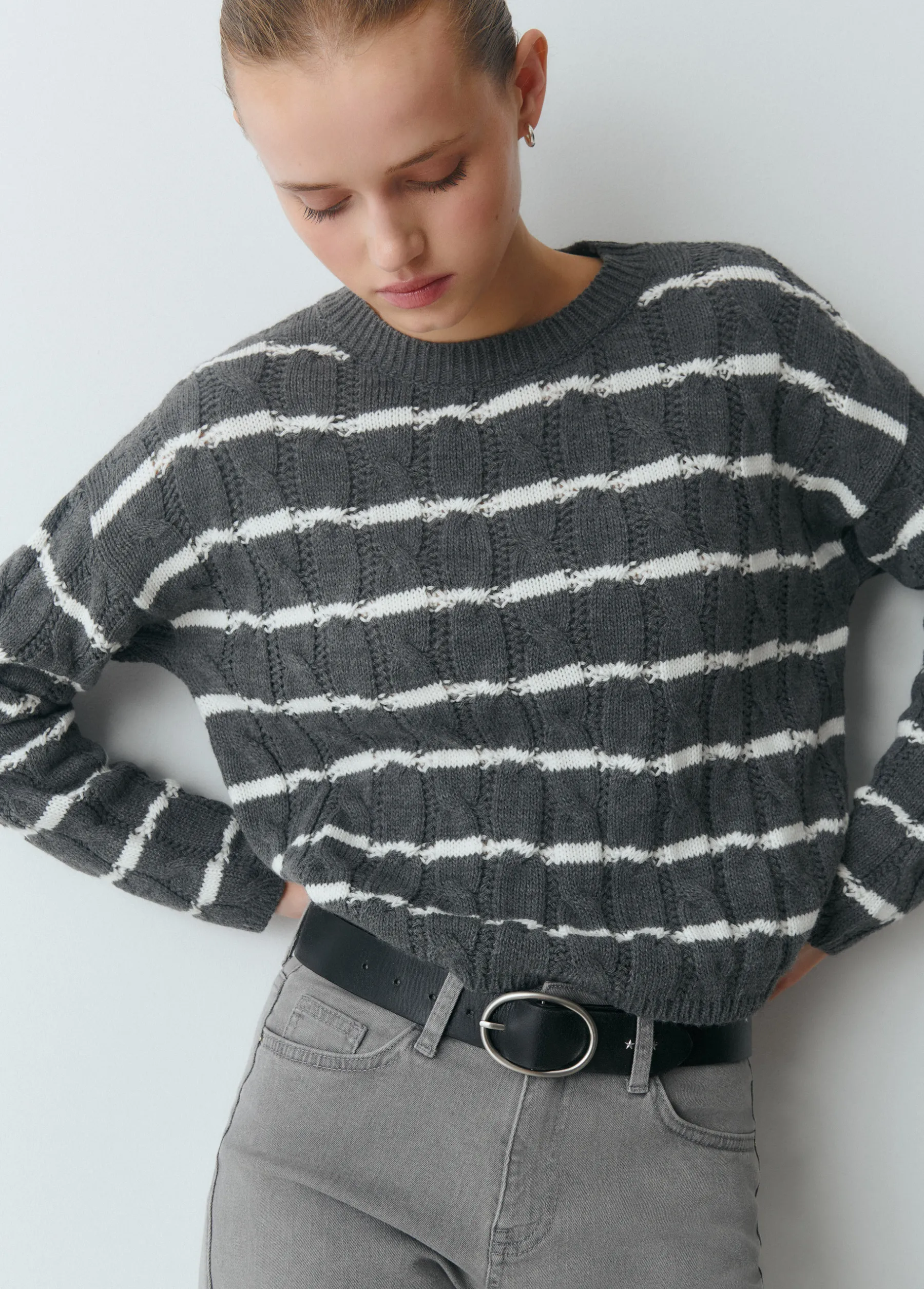 Jersey de trenzas de manga larga y cuello redondo con estampado de rayas.