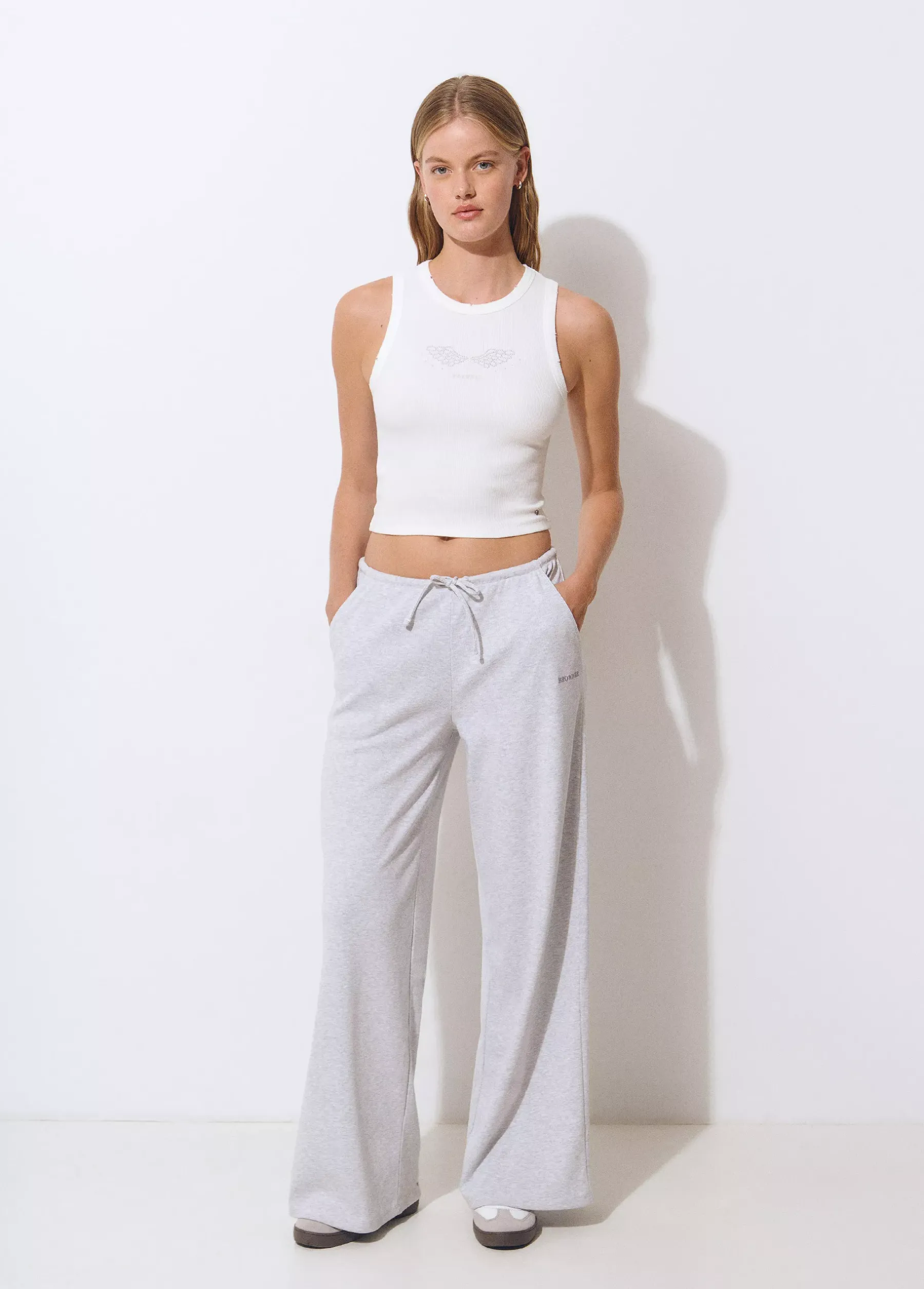 Pantalón de felpa con bolsillos, logo Brownie y goma en la cintura mediante lazada.
