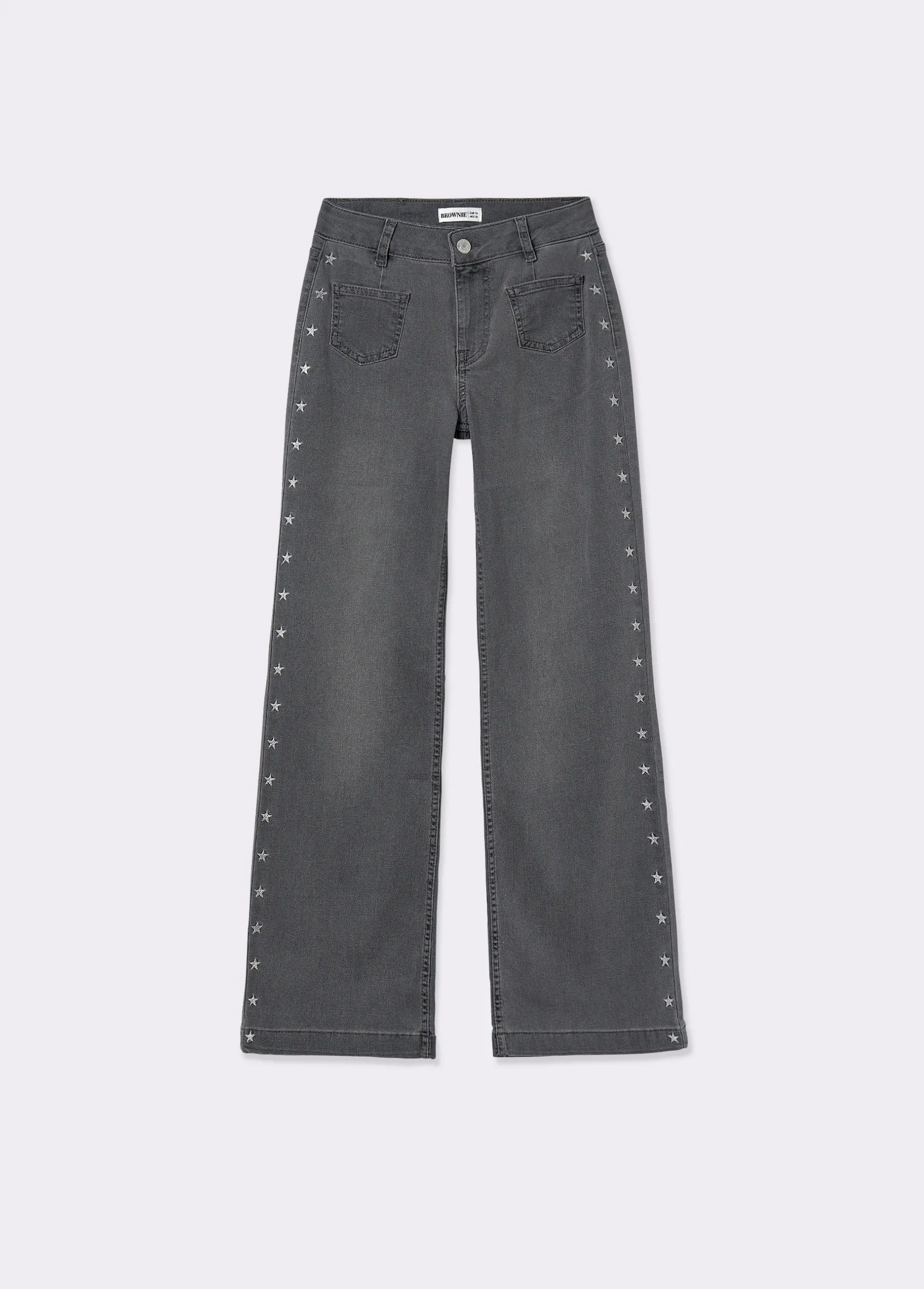 Pantalones|Jeans*Brownie Pantalón culotte bordado estrellas Gris